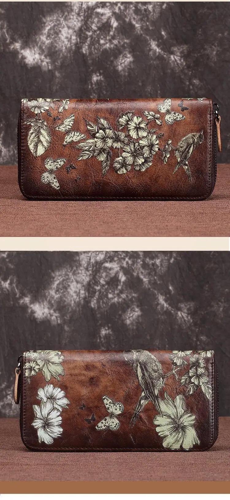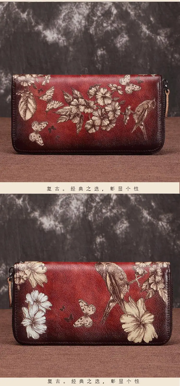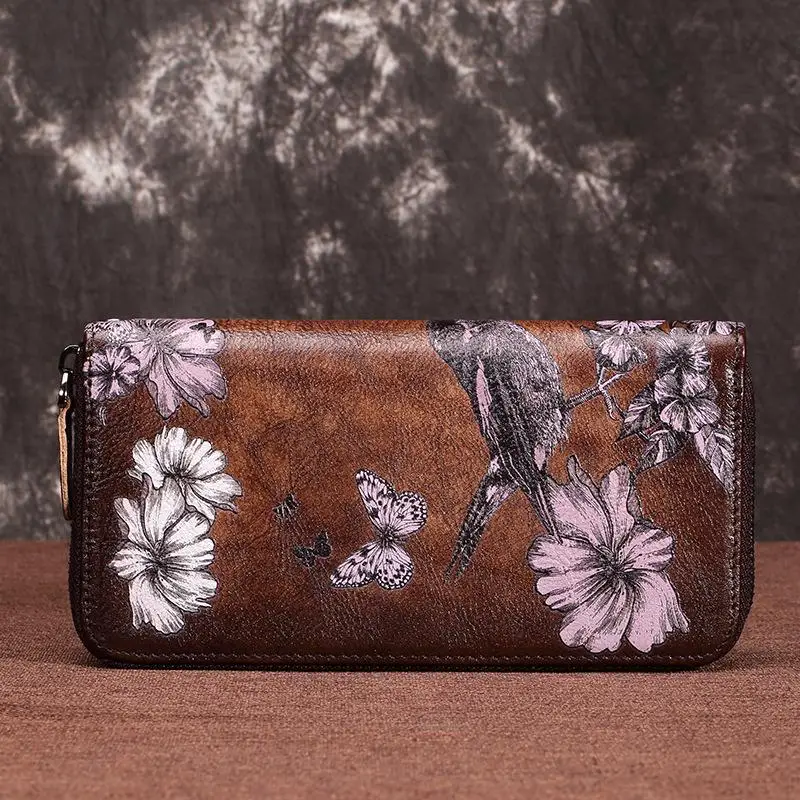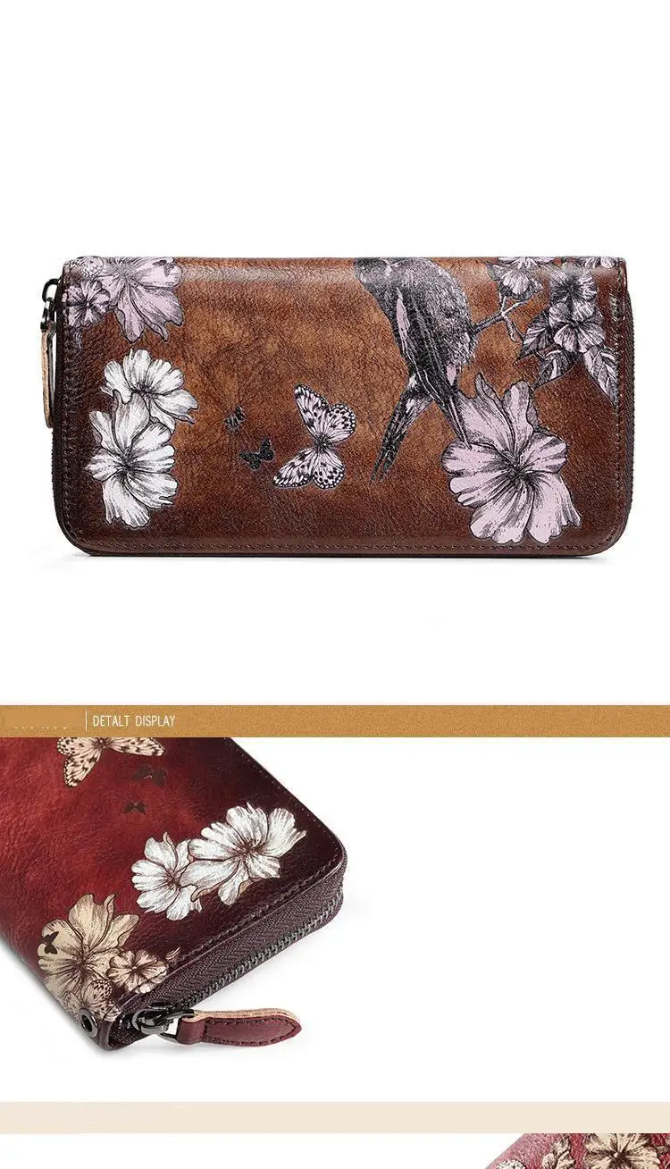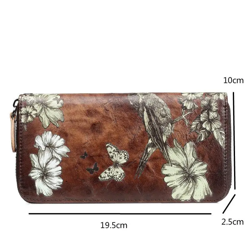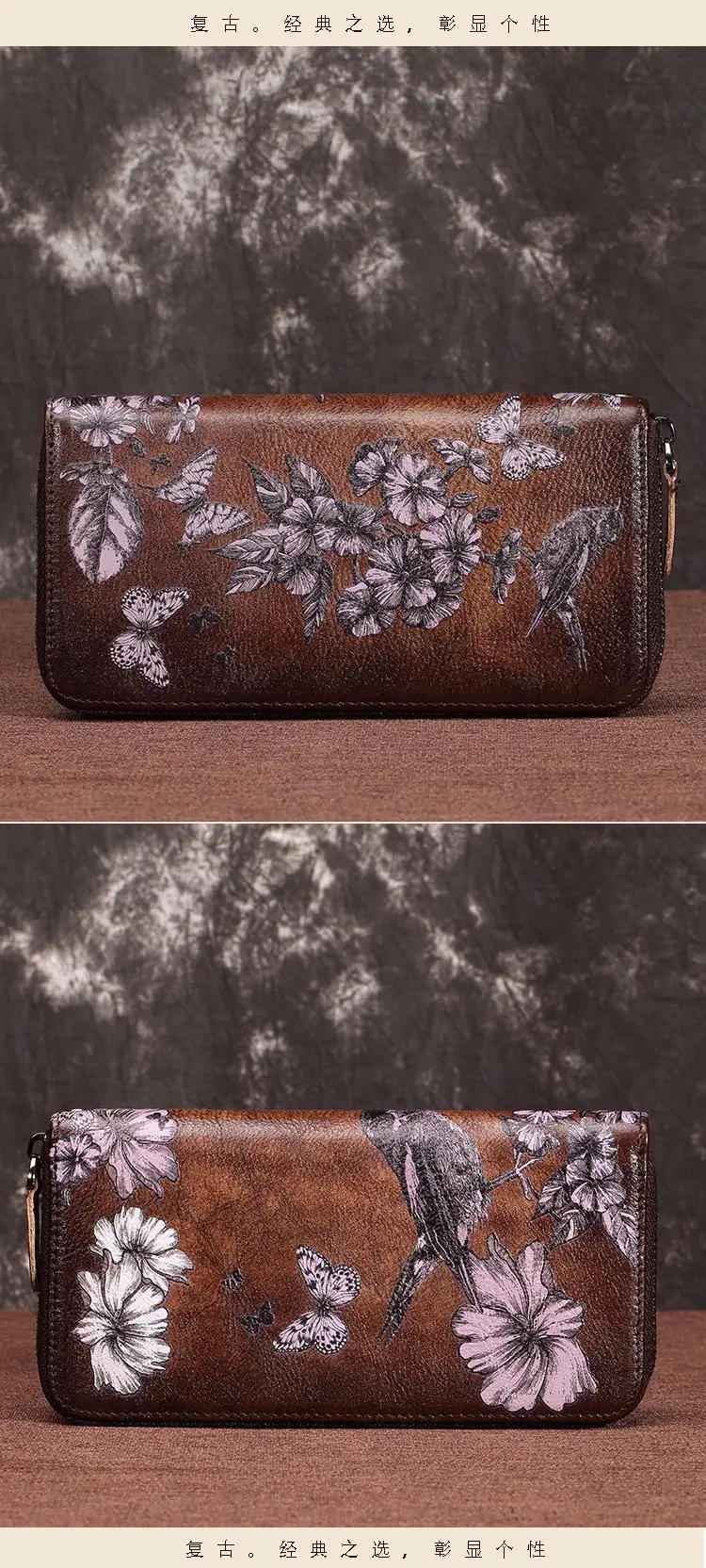 Женские кошельки и бумажники в стиле ретро с цветочным рисунком, новинка 2021, удобный кошелек, кредитница, кошелек для телефона из натуральной кожи, Роскошный кошелек