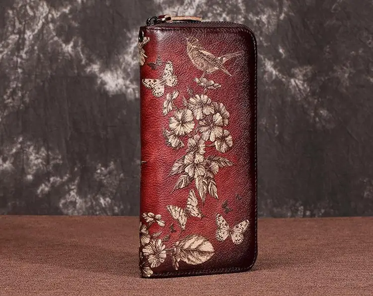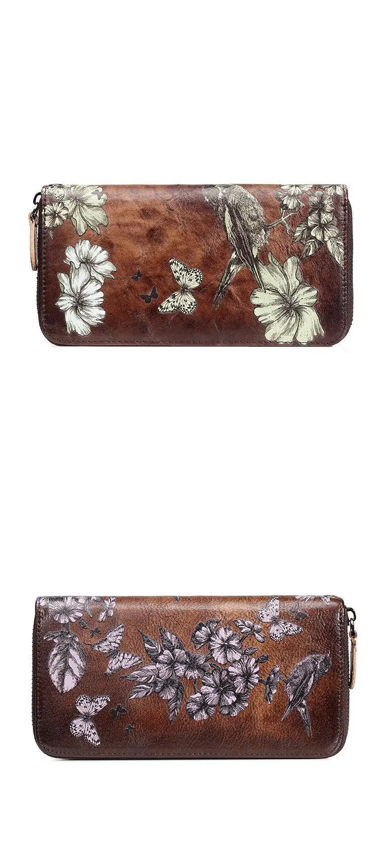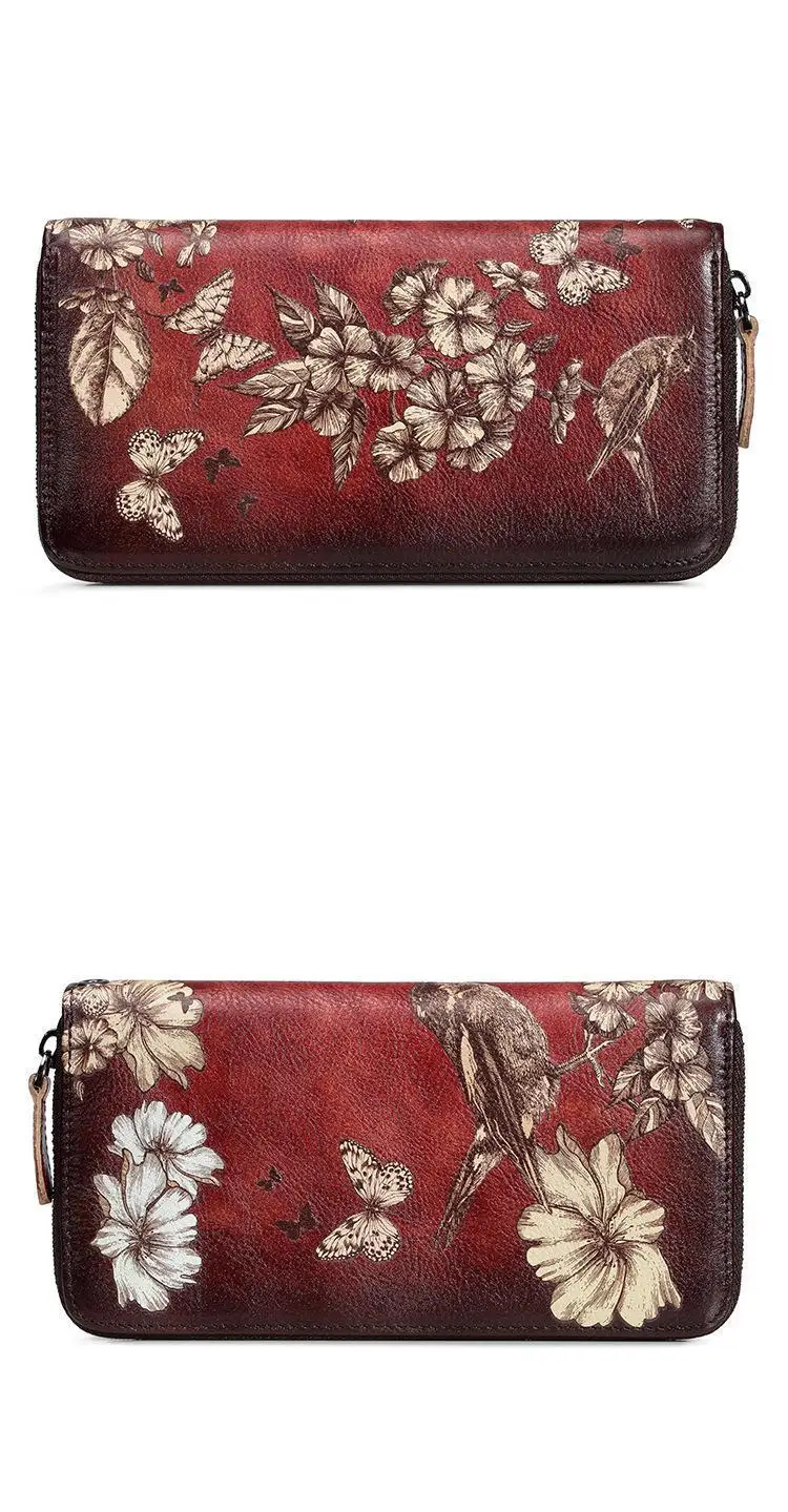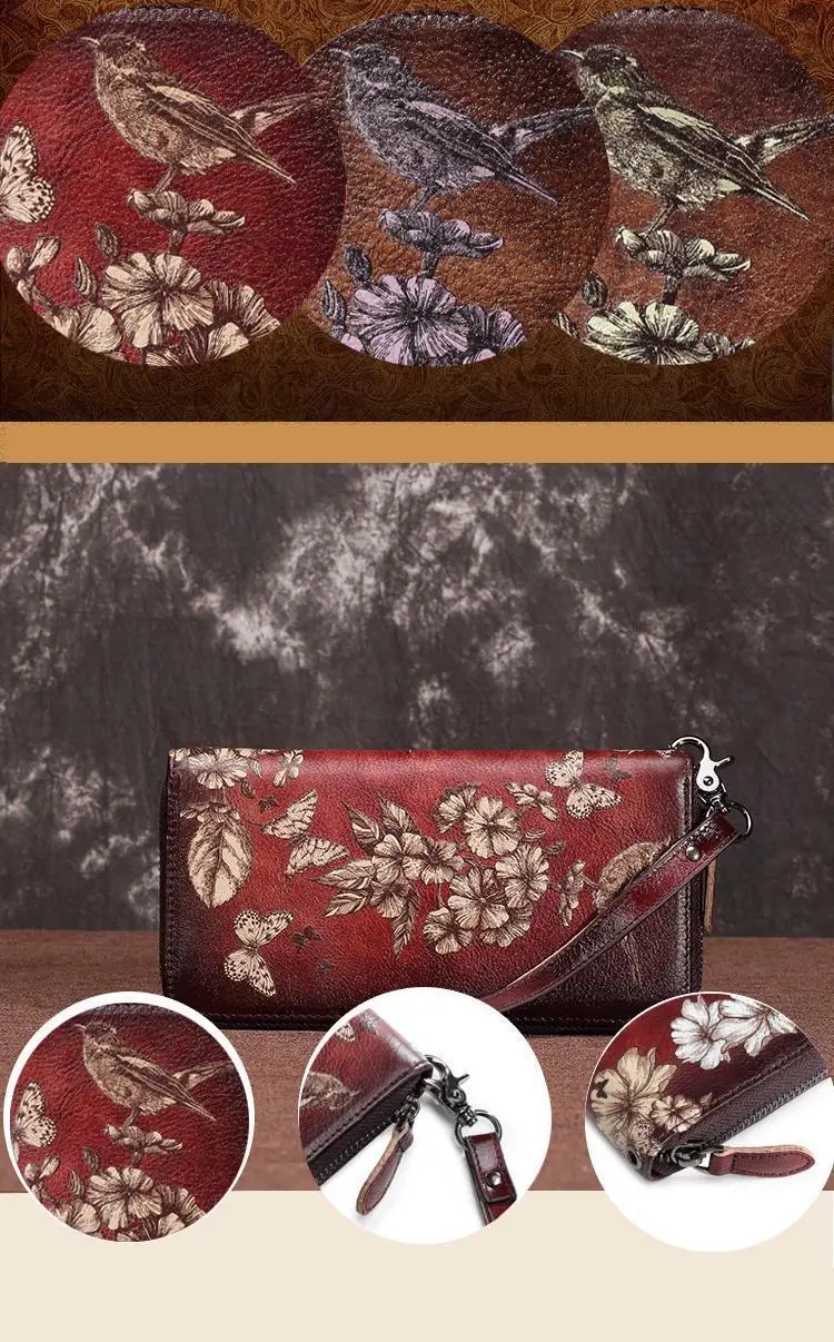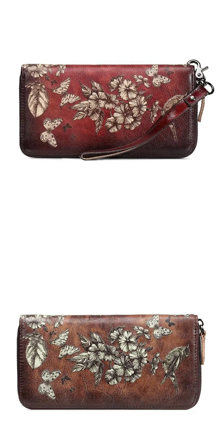 Женские кошельки и бумажники в стиле ретро с цветочным рисунком, новинка 2021, удобный кошелек, кредитница, кошелек для телефона из натуральной кожи, Роскошный кошелек