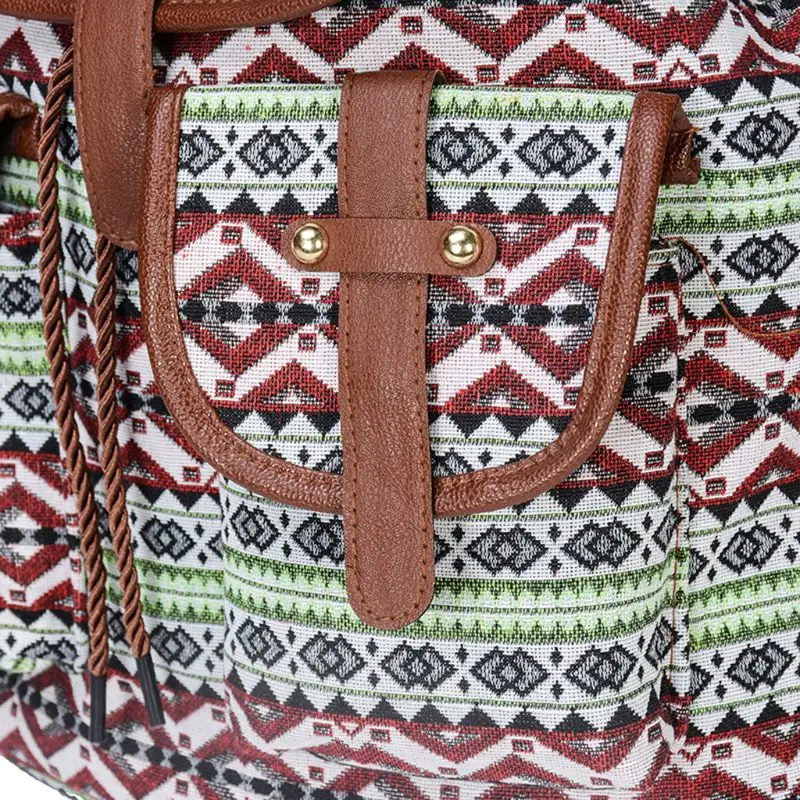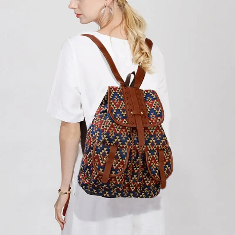 Холщовый этнический рюкзак с винтажным принтом для женщин, школьные ранцы для девочек, дорожный богемный ранец на шнурке