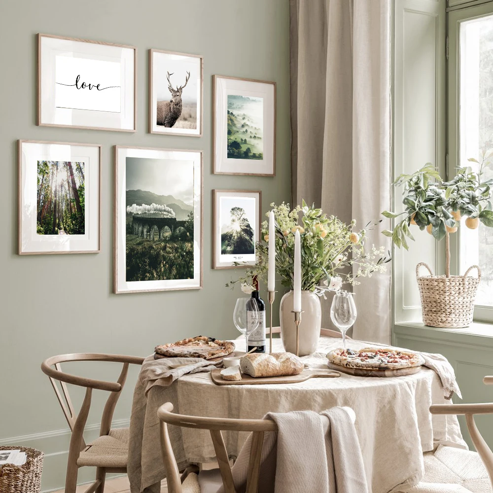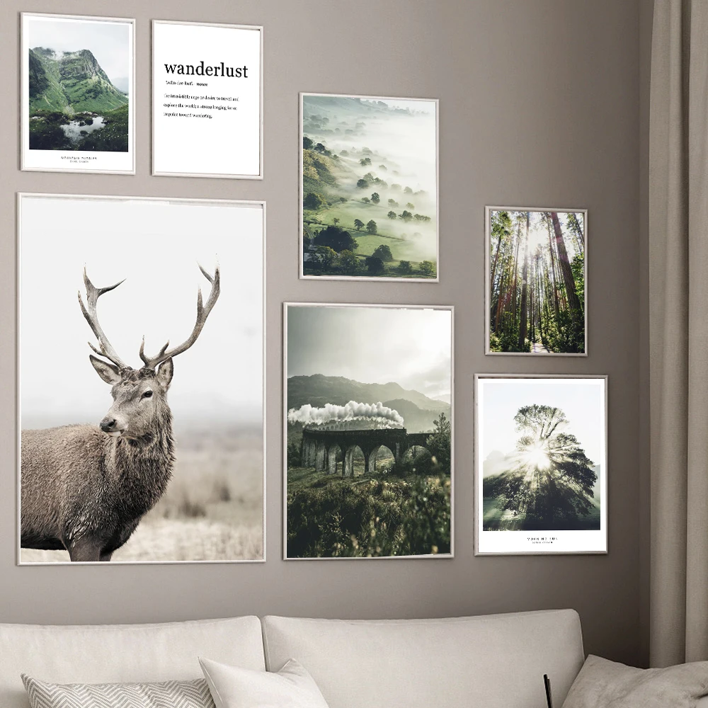 Осенний лес, красный олень, скандинавский пейзаж, живопись, скандинавский утренний пейзаж, холст, плакат, Художественная печать, настенные картины, домашний декор