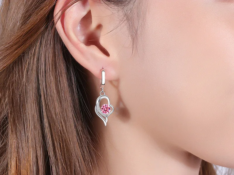 Серьги из стерлингового серебра 925 пробы с сердцем розовые синие с...
