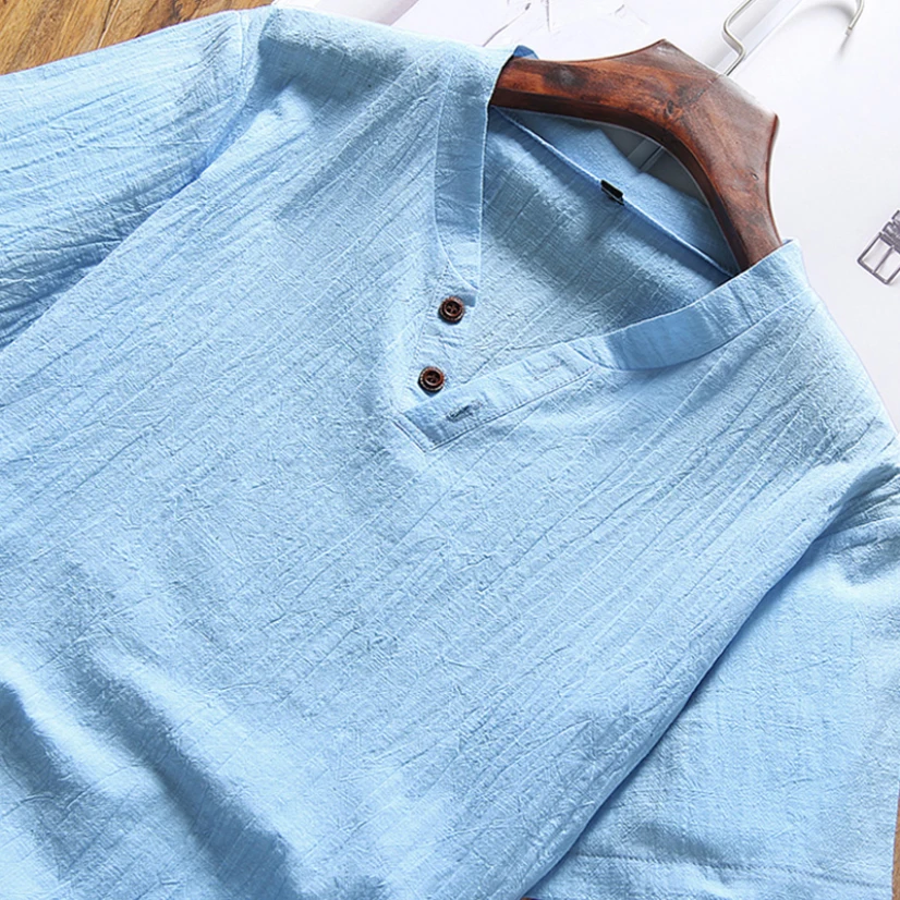 Хлопковая Льняная мужская рубашка, дышащие однотонные блузы и рубашки с коротким рукавом, Мужской пуловер, Мужская одежда, летняя рубашка