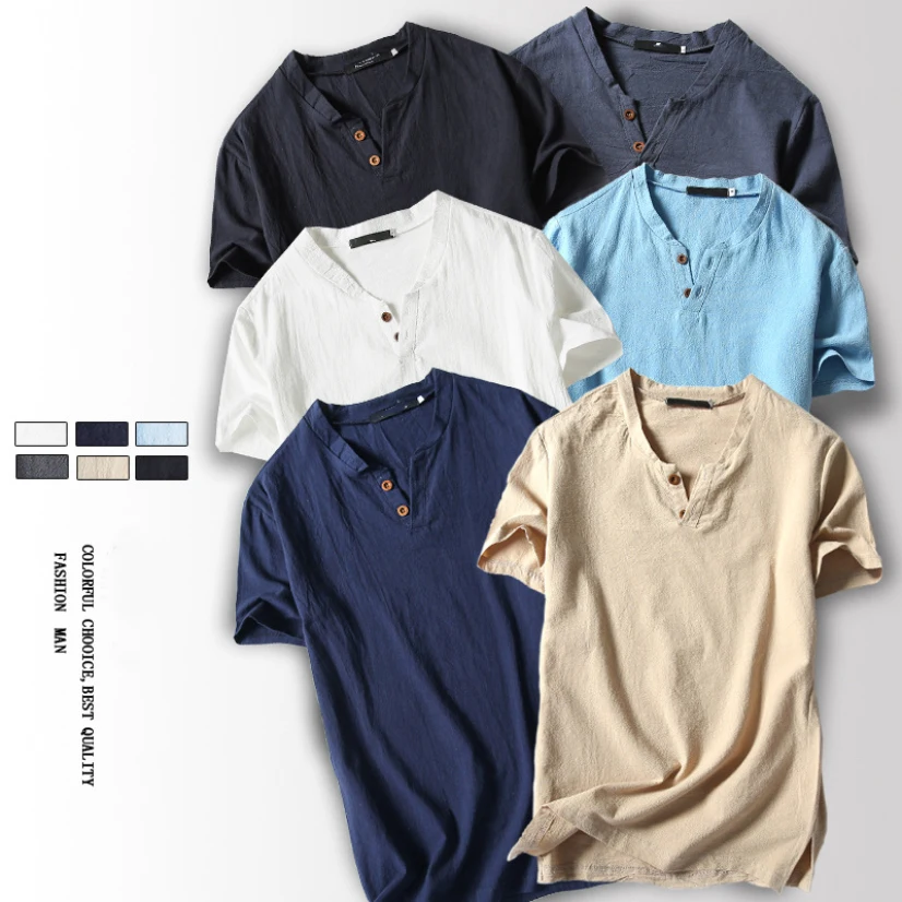 Описание товара:Воротник: воротник-стойкаПол: мужчинМатериал: лен, хлопокСтиль рукава: Короткие рукаваТип узора: однотонныйДлина: обычнаяРазмер: L,XL,XXL,XXXL,XXXXL,XXXXXLСтиль: ПовседневныйТип узора: мужские футболкиПосылка: 1 шт.; Мужская футболка с короткими рукавамиПримечание:Замеры сделаны вручную, поэтому возможны 0,5-1 см, связанная с особенностями измерения вручную. (1 дюйм = 2,54 см)Цвет фактического товара может немного отличаться от приведенного выше изображения из-за различий в экране компьютера, спасибо за понимание.