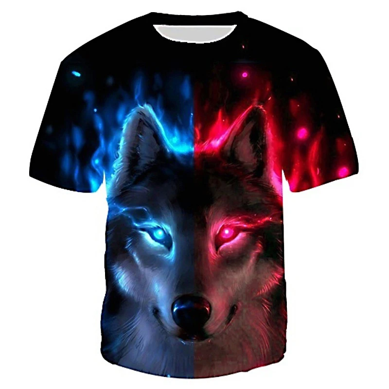 Футболка Мужскаяженская с 3D-принтом волка и коротким рукавом