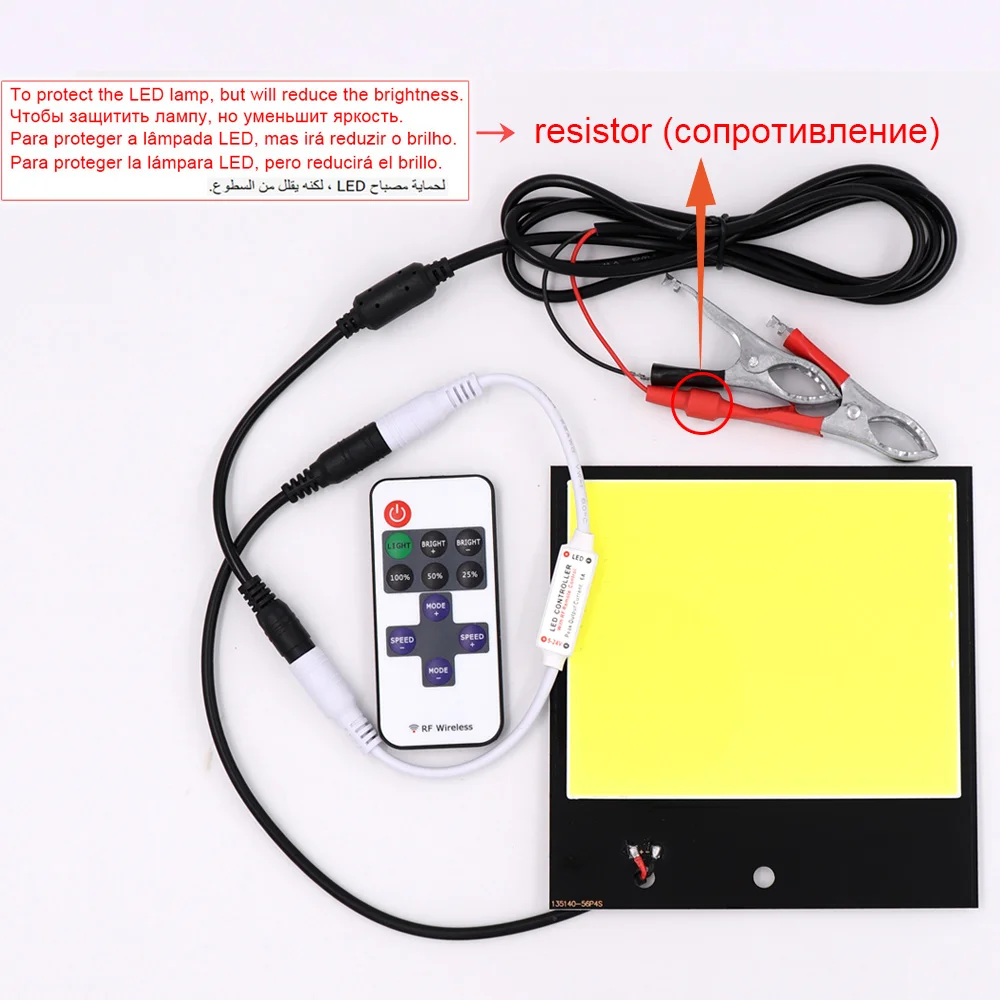 Есть большой резистор на зажиме батареи, чтобы защитить светодиодный светильник (потому что иногда напряжение очень высокое при запуске автомобиля), и резистор ограничит ток и уменьшит мощность, таким образом, яркость лампы будет значительно снижена.Если вы хотите 100% полную яркость, вы можете снять резистор самостоятельно.