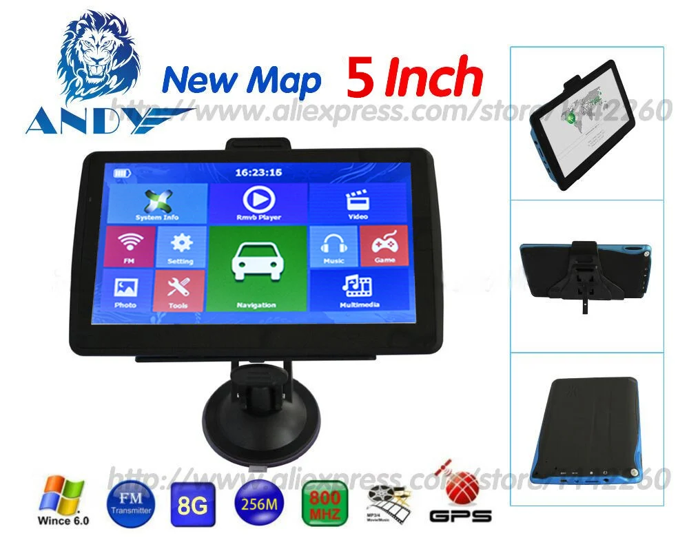 5 "HD Автомобильный GPS навигация 8G + RAM-256MB + 800X480 + последняя карта Европы + грузовик gps навигаторами