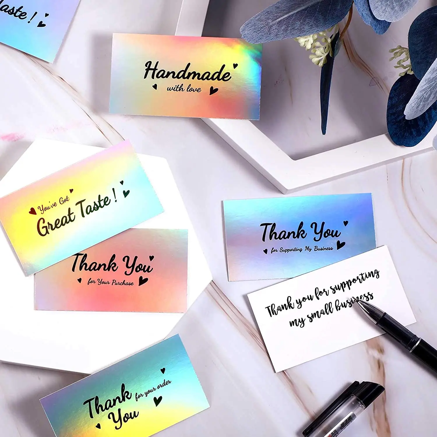 10 шт., голографические Серебристые карточки для поддержки моего малого бизнеса, прямоугольные 3,5x2 ''для розничного магазина посылка вставные карточки