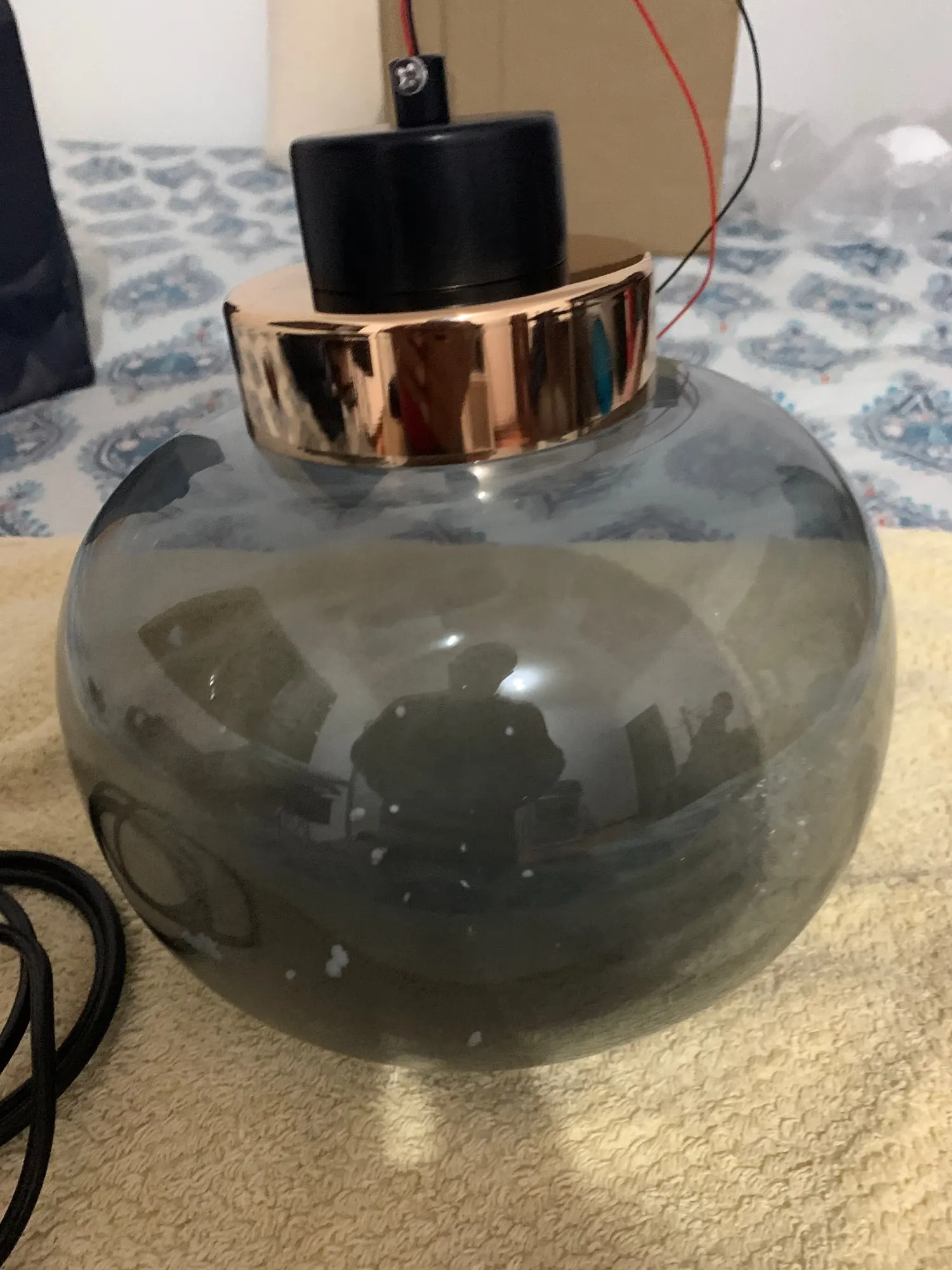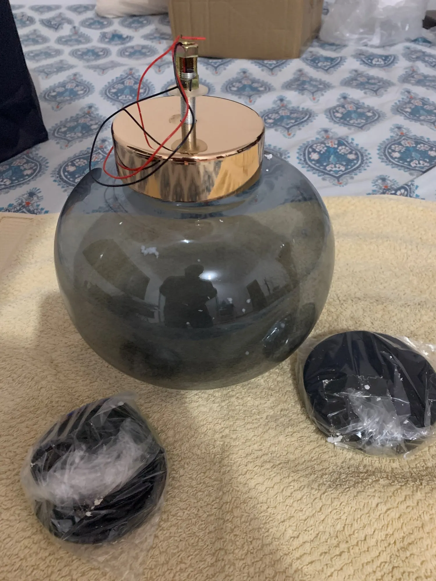 Привёз курьер на дом, доставка быстрая ! Упаковано в пенопласт, но не очень толстый. Коробка Обклеена наклейками напоминающими о хрупкости содержимого! Внутри нет ни какой инструкции по сборке, пришлось самому догадываться, это первый мой опыт и потому пришлось потратить пару минут! Внешний вид светильников очень понравился. Из-ха структуры стеклянной колбы свет с небольшим искажением.