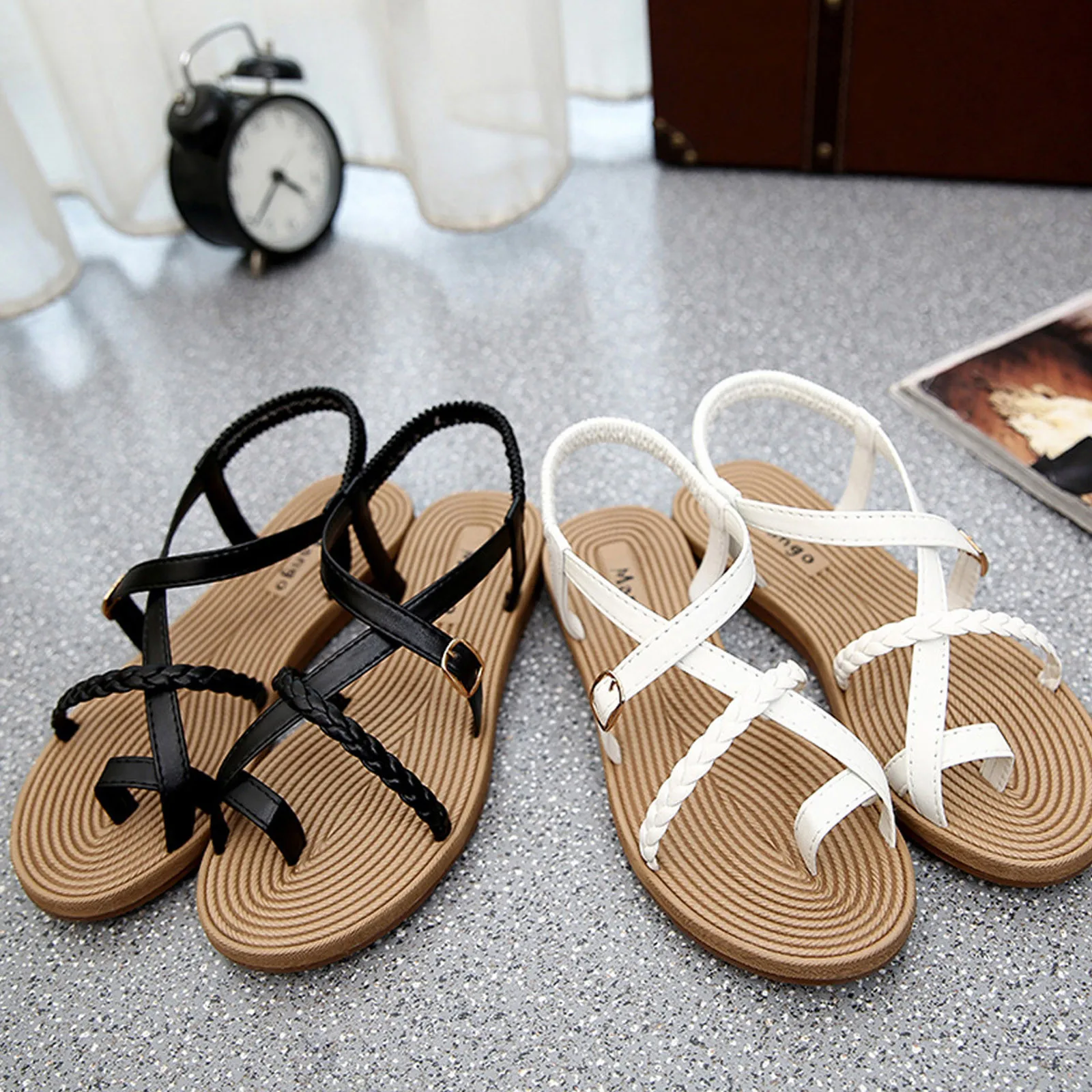 Женские босоножки; Коллекция 2021 года; Летние пляжные сланцы; Модные однотонные сандалии с пряжкой на ремешке; Женская повседневная обувь на плоской подошве
