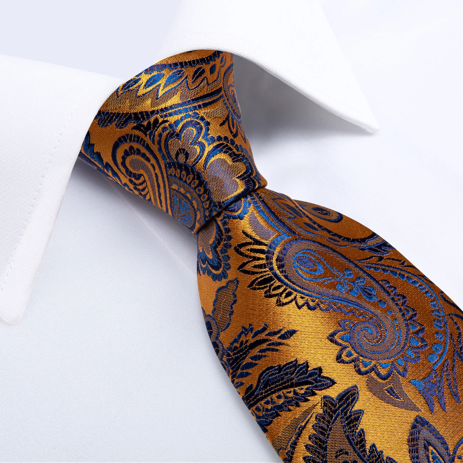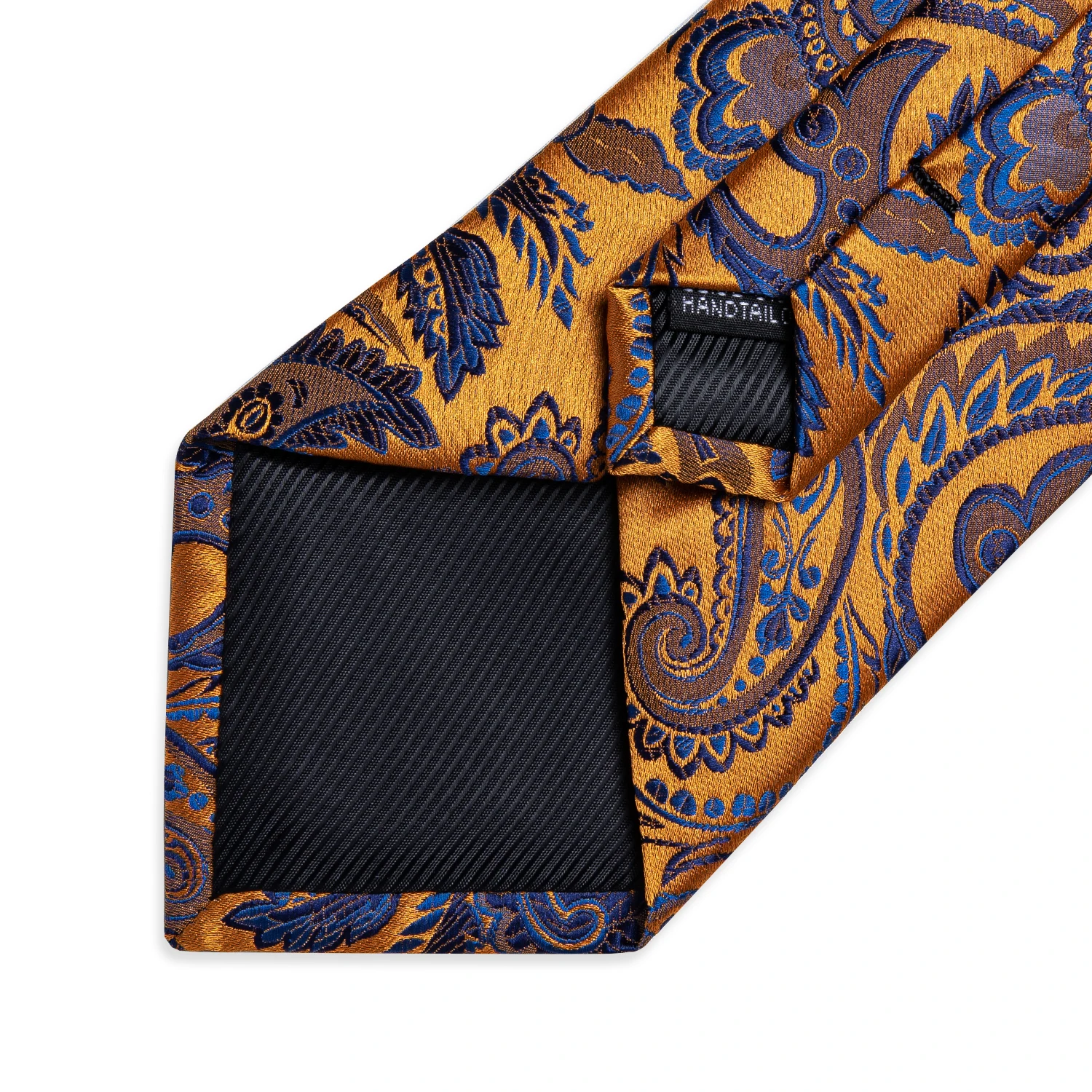 Желтый Пейсли синий галстук для мужчин 8 см классический деловой Шелковый комплект галстука носовой платок запонки Свадебный галстук подарок для мужчин DiBanGu