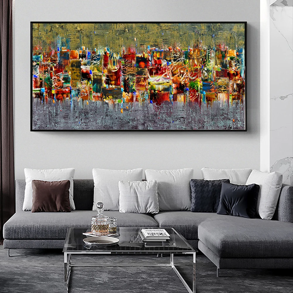Современный исламский холст с каллиграфией живопись мрамор Арабский...