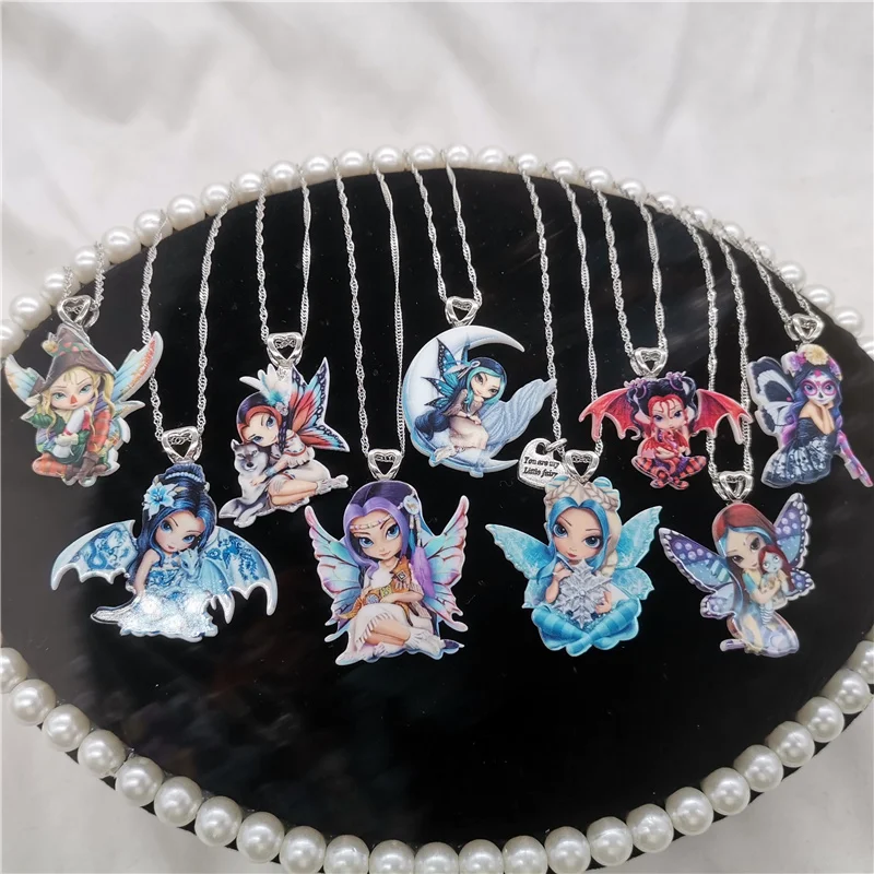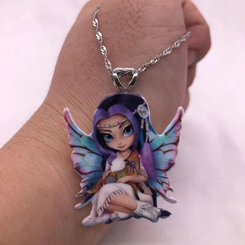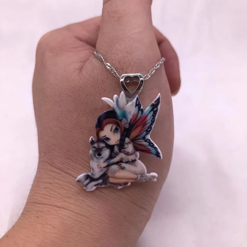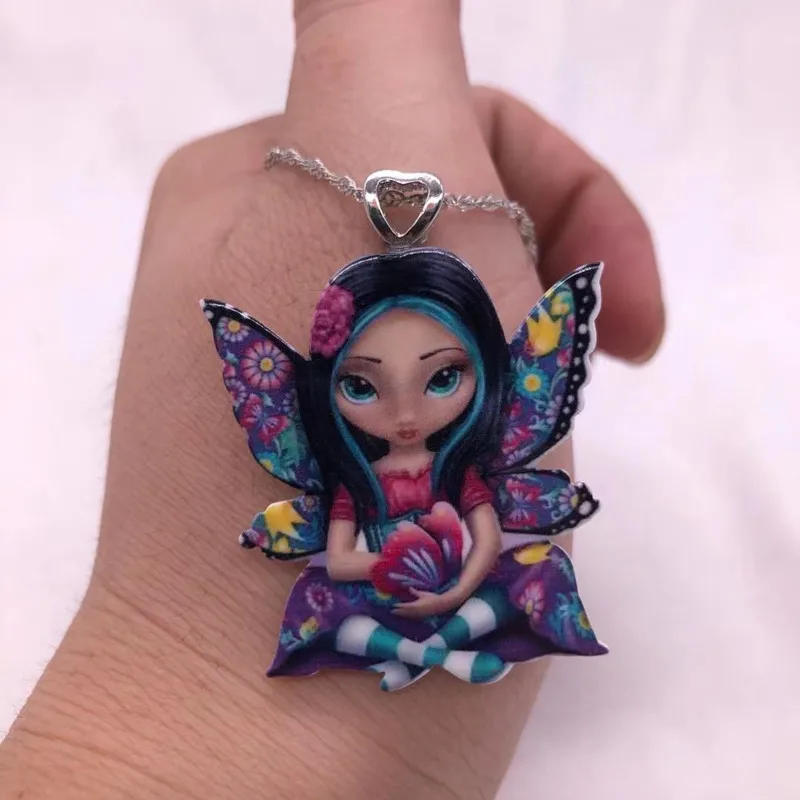 Ожерелье с подвеской для женщин, ожерелье из смолы с изображением крыльев цветка Феи Бабочки, милое животное, аниме, мультяшное колье, новое ювелирное изделие