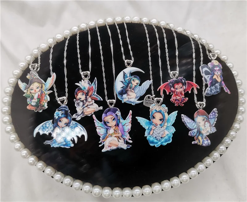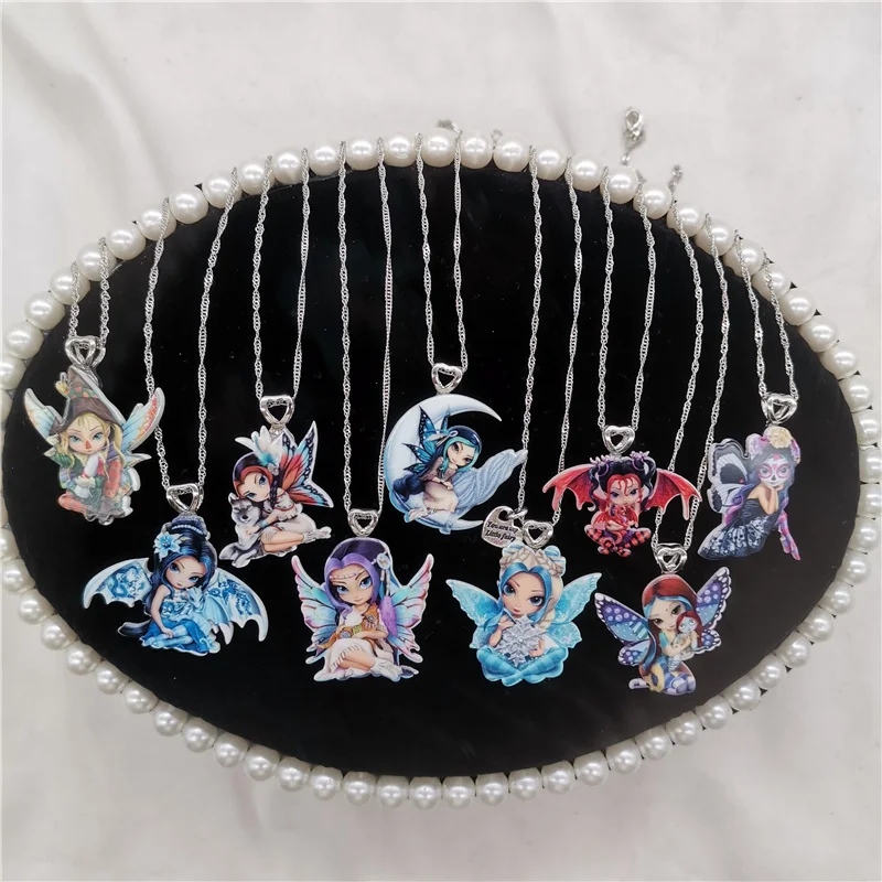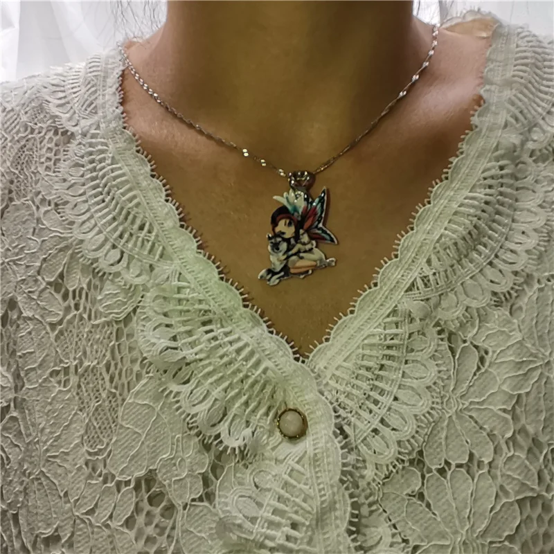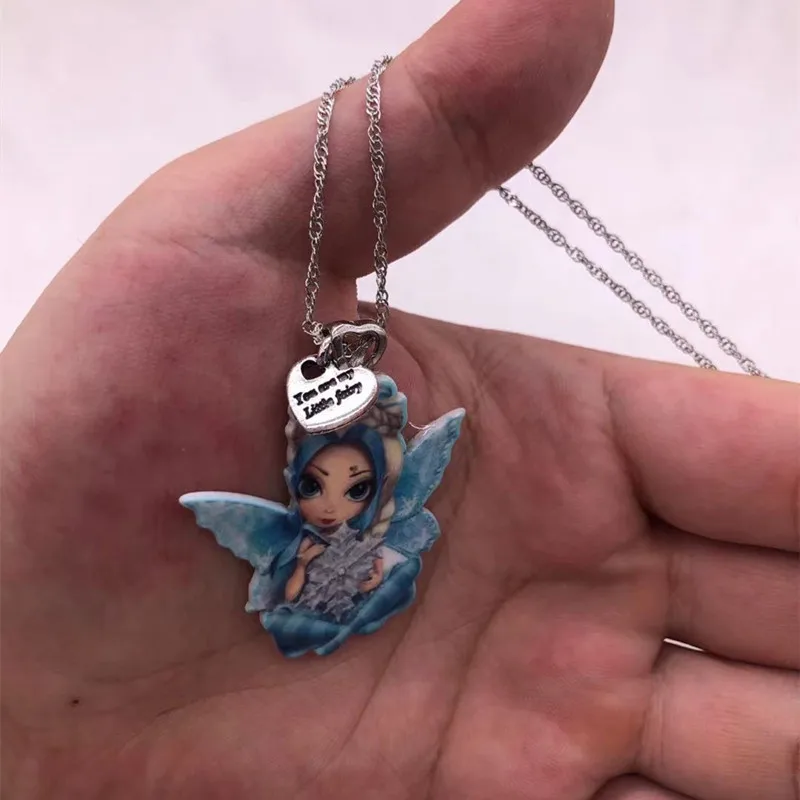 Женское ожерелье с подвеской из смолы, чокер с мультяшным аниме рисунком, крыло, цветок, фея, Бабочка, Ожерелье