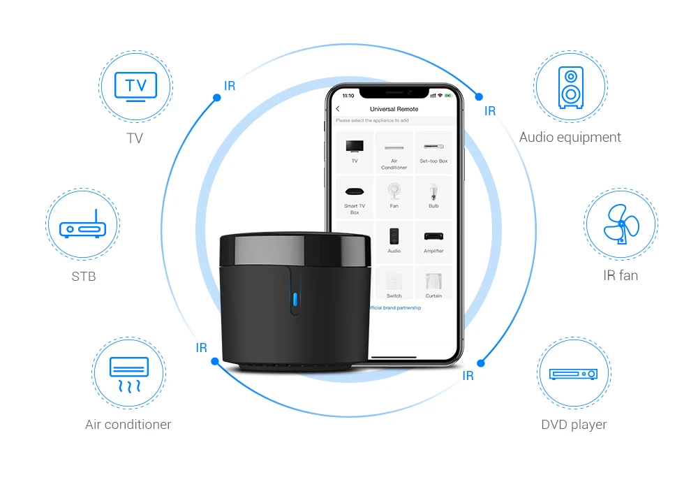 Универсальный пульт дистанционного управления BroadLink IR интегрирует Управление Вашими ИК-приборами одно простое в использовании приложение «BroadLink». С Alexa или Google Assistant, это дает вам Голосовое управление руками ваших устройств, например, включение/выключение телевизора или включение/Уменьшение громкости с помощью голосовой команды.