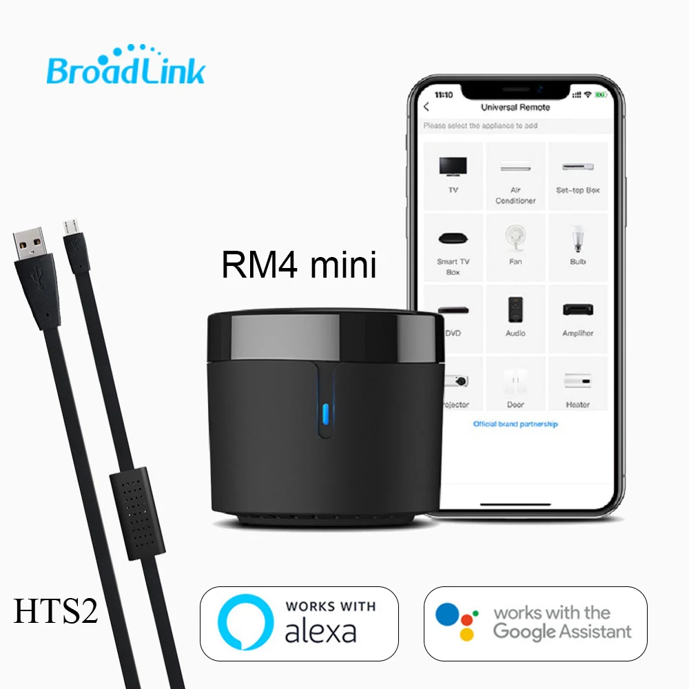 Мини-пульт дистанционного управления Broadlink RM4, WiFi, ИК, датчик температуры и влажности, HTS2, работает с модулями автоматизации Alexa Google Home