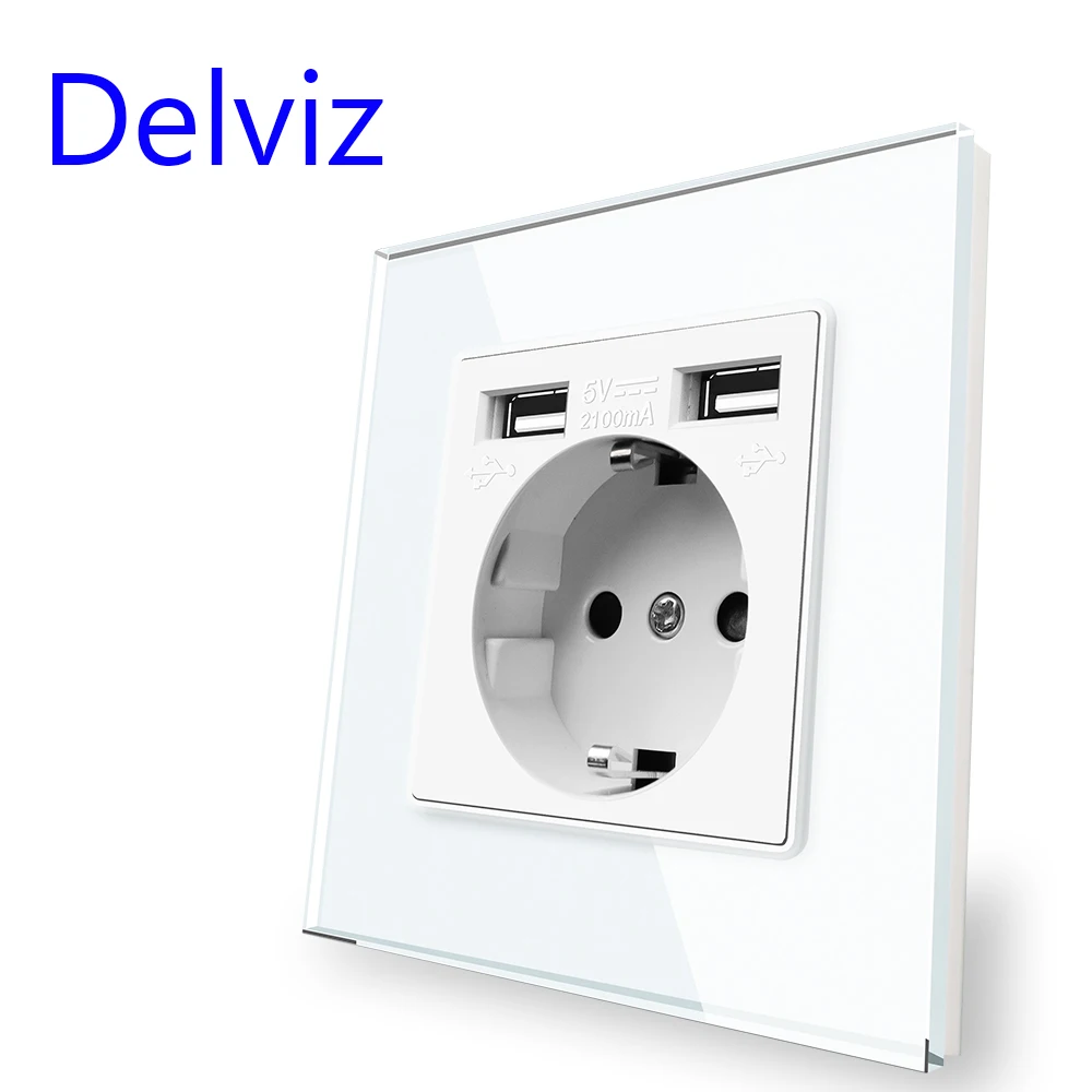 Настенная розетка Delviz USB Type C, 5 в 2100 мА с двумя usb-портами, белая закаленная прозрачная стеклянная панель, розетка европейского стандарта 16 А
