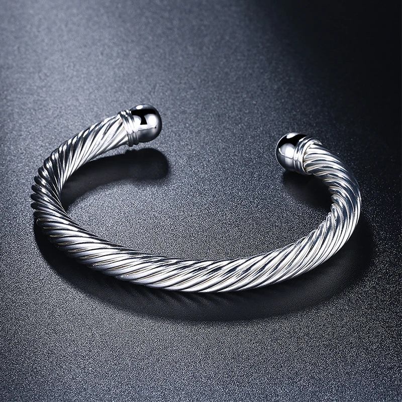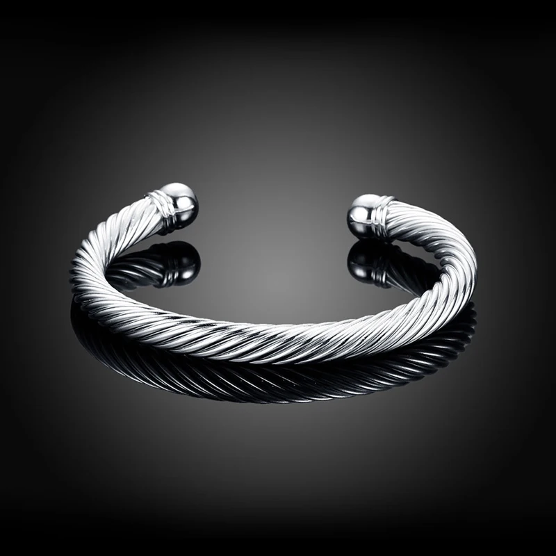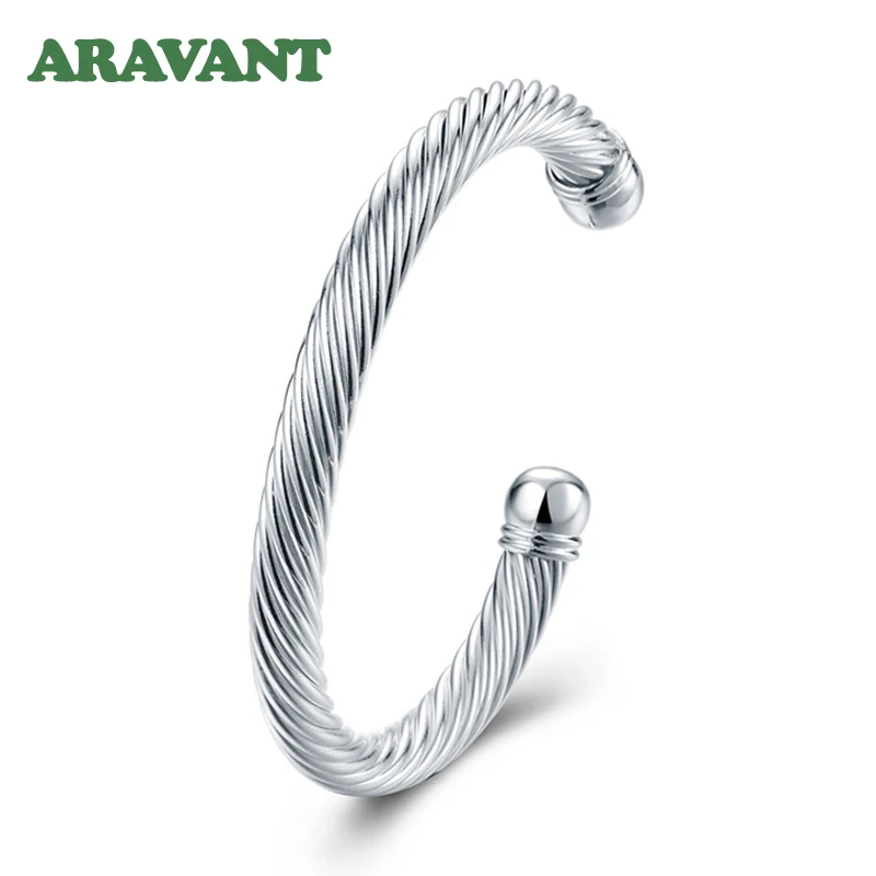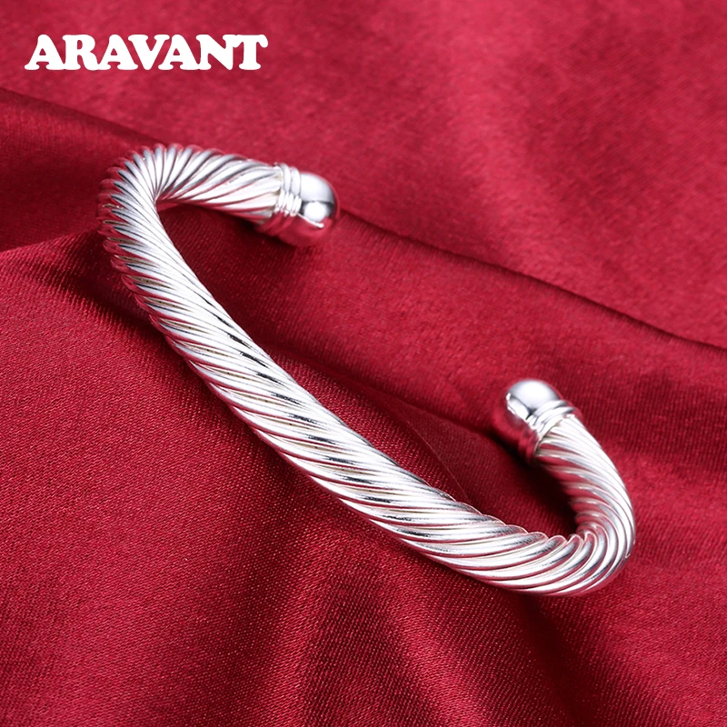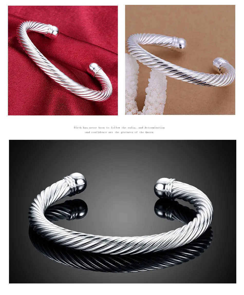 925 Серебряный витой веревки открытый Браслет манжета браслет для женщин Свадебные Ювелирные изделия Подарки