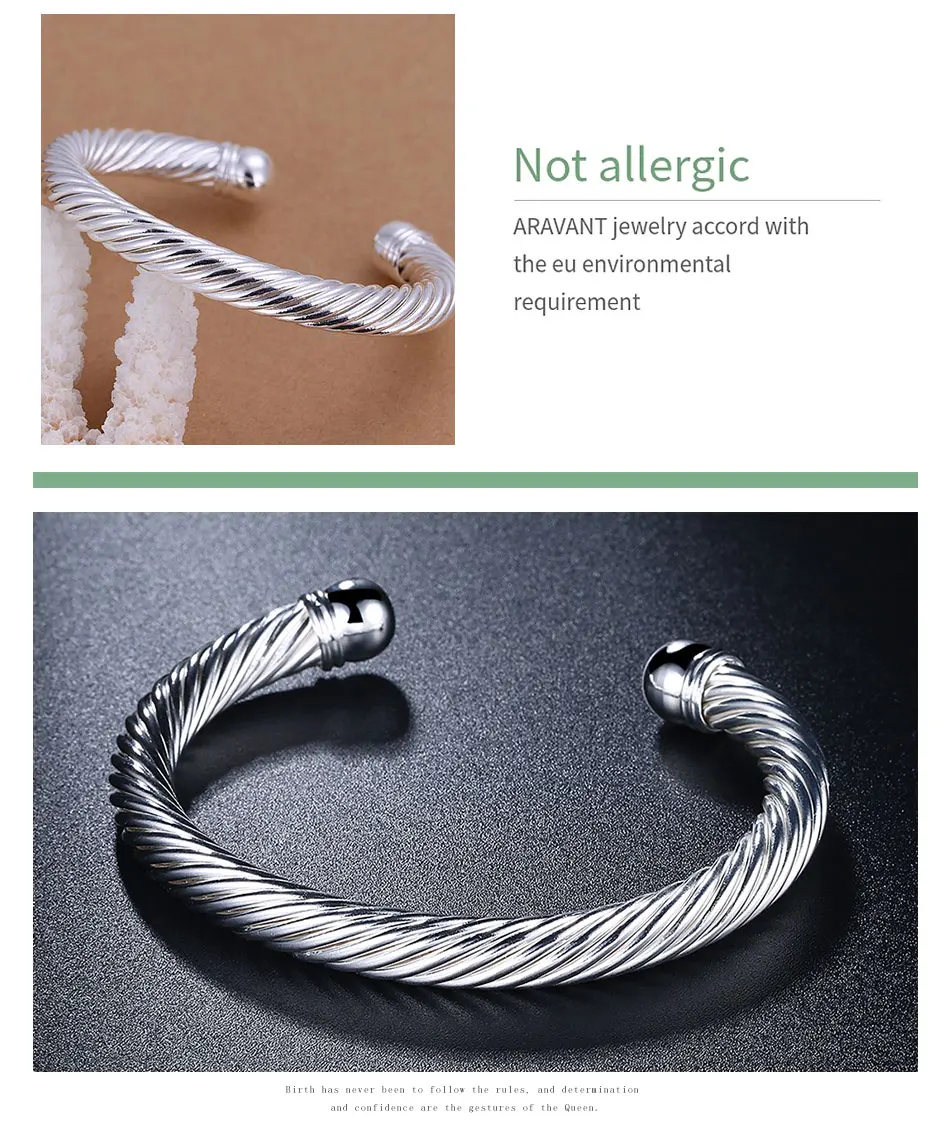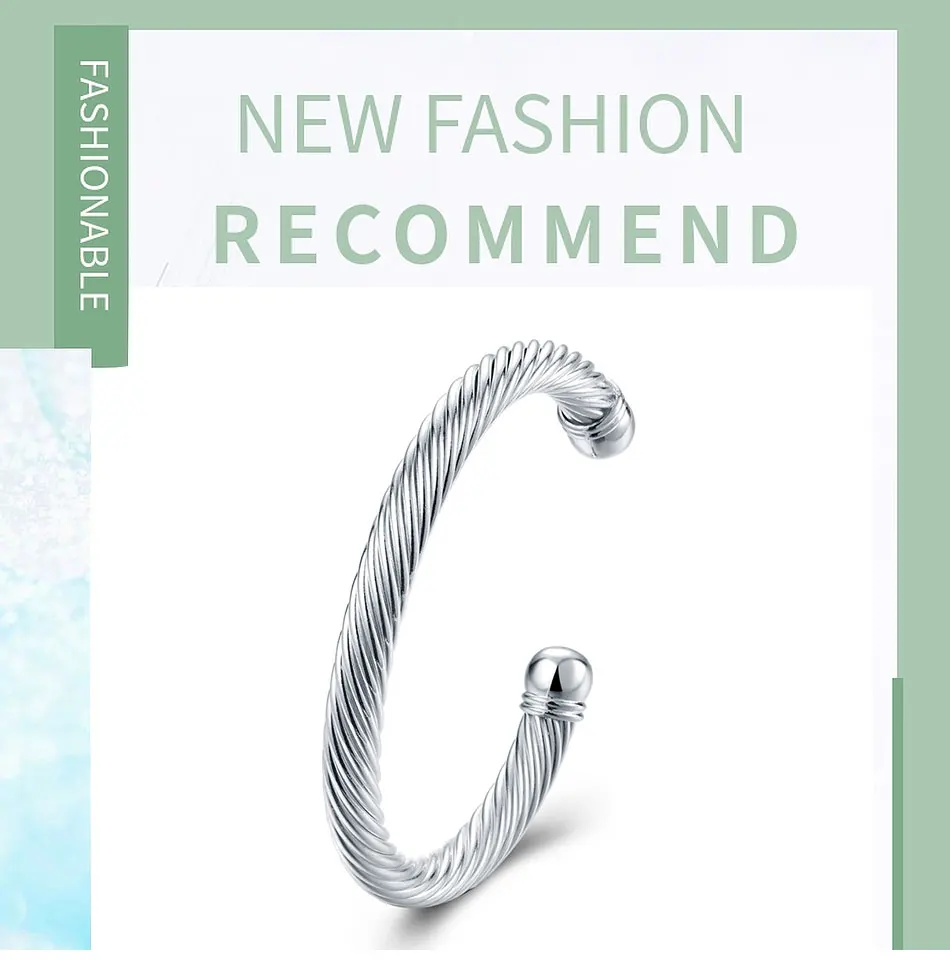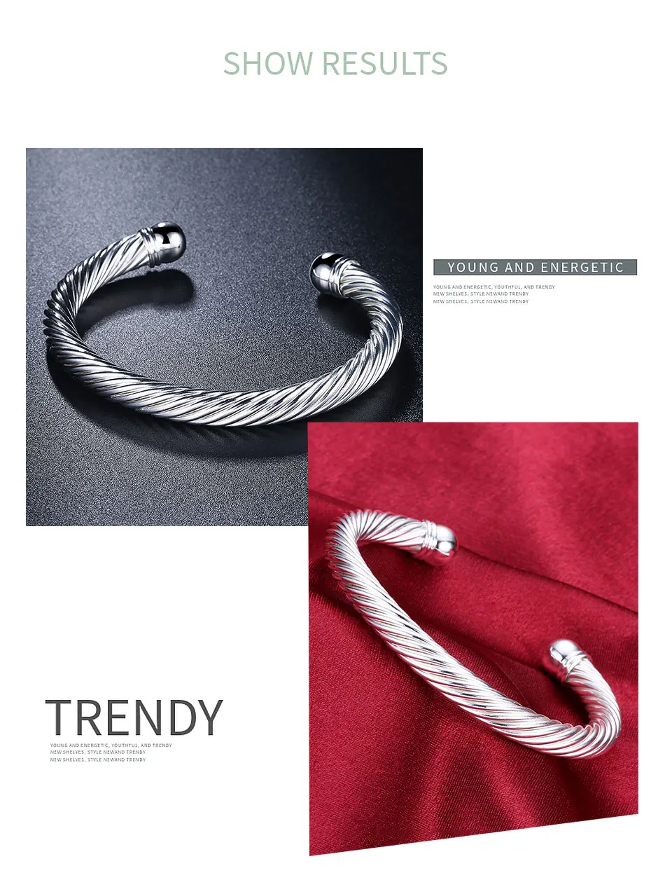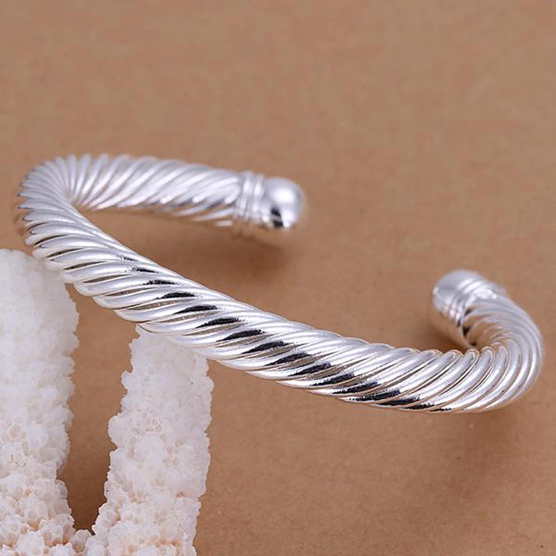 925 Серебряный витой веревки открытый Браслет манжета браслет для женщин Свадебные Ювелирные изделия Подарки