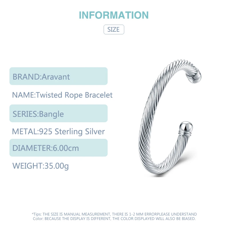 925 Серебряный витой веревочный Открытый Браслет-манжета браслет для женщин Свадебные Ювелирные изделия Подарки