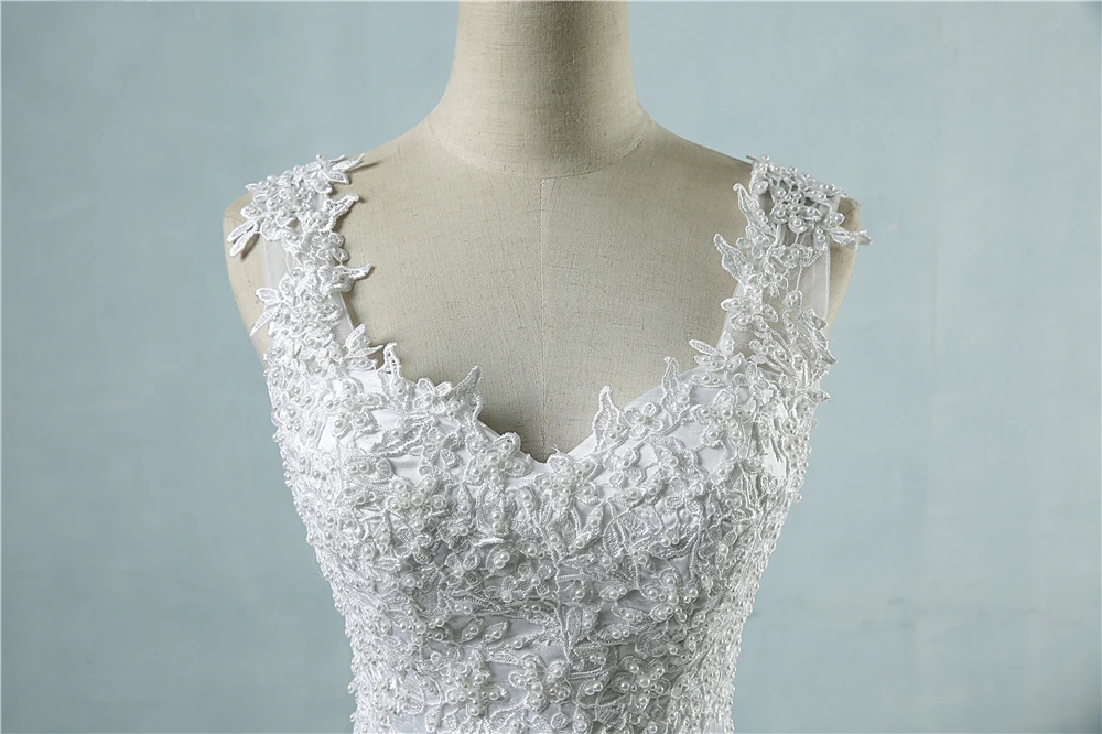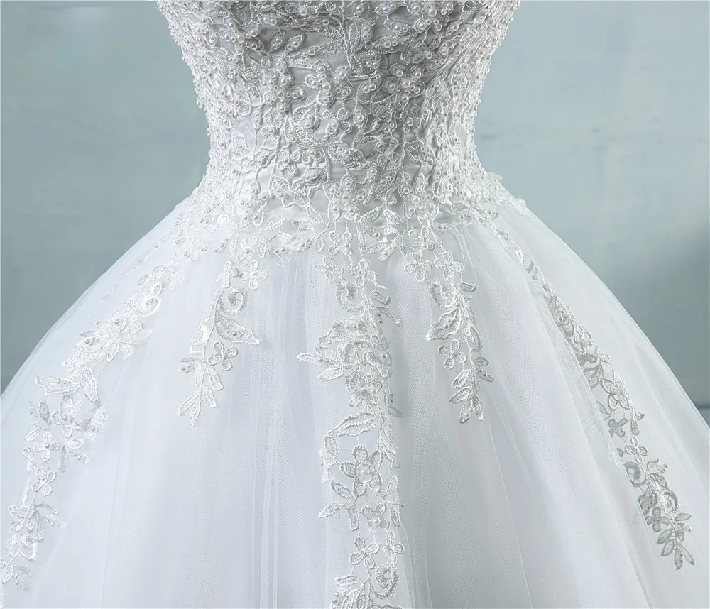 Бальные платья на бретелях-спагетти, белое Тюлевое платье невесты цвета слоновой кости для свадебных платьев, 2021 жемчужины, для брака, A270
