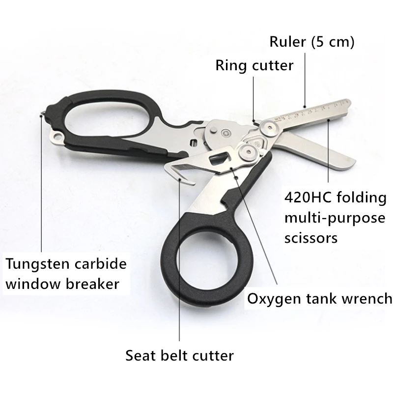Этот тип ножниц может использоваться в качестве триммера, который может иметь дело с металлическим тонким слайсером, и может использоваться в качестве молотка безопасности, вы также можете выживать из автомобиля в чрезвычайной ситуации, вы можете использовать его для открытия бутылки.