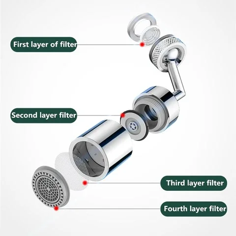 Наш универсальный фильтр брызг кран имеет Четырехслойный сетчатый фильтр, он может фильтровать примеси, такие как твердые частицы в воде, не беспокойтесь о безопасности воды!