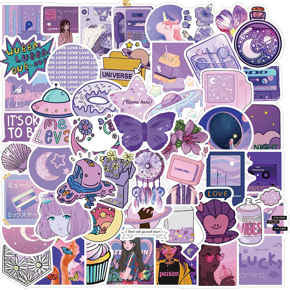 103050 шт. романтические фиолетовые наклейки VSCO в стиле граффити s в эстетике для ноутбука, бутылки для воды, телефона, водонепроницаемые наклейки сделай сам для подростков