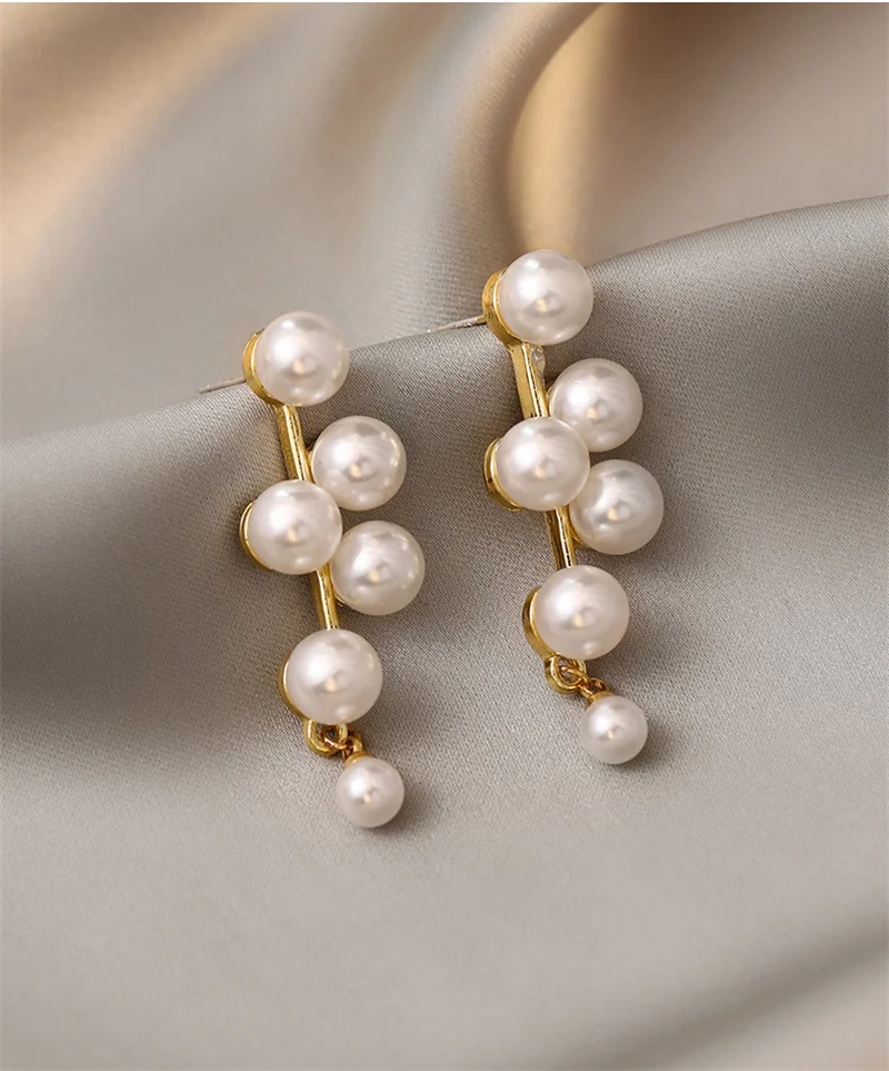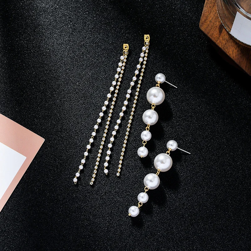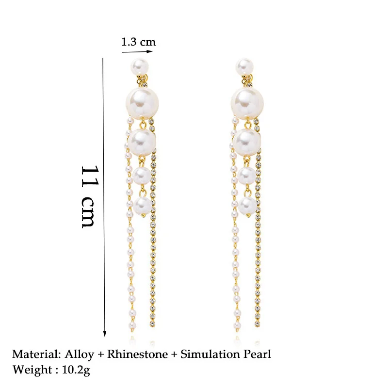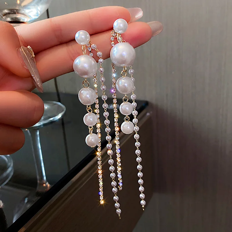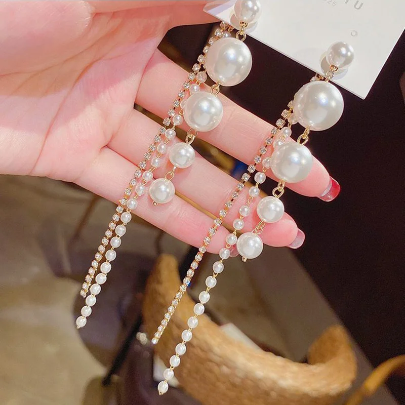 Модные длинные серьги с большими жемчужинами и кисточками для женщин, кристальная цепочка, висячие серьги, корейские ювелирные изделия, свадебное украшение, Femme, новинка 2021