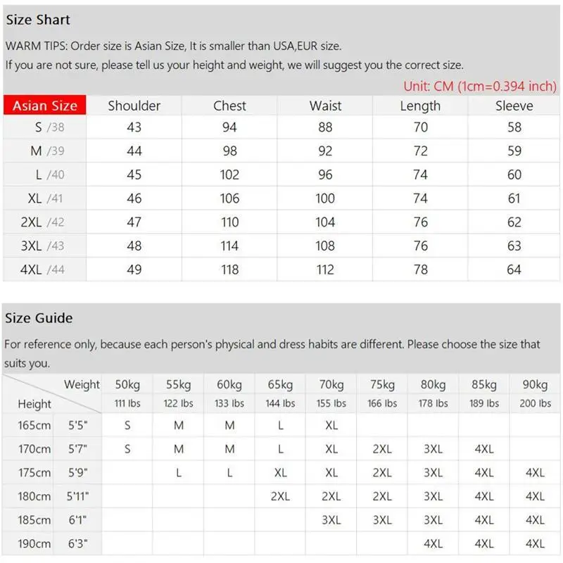 Полезные советы: при заказе указан Азиатский Размер, он меньше, чем американский, европейский. Если вы не уверены, сообщите нам свой рост и вес, мы предложим вам правильный размер. Единица измерения: см (1 см = 0,394 дюйма)