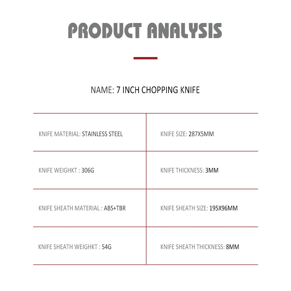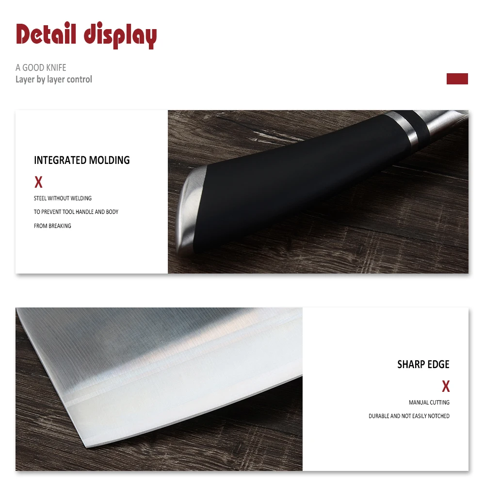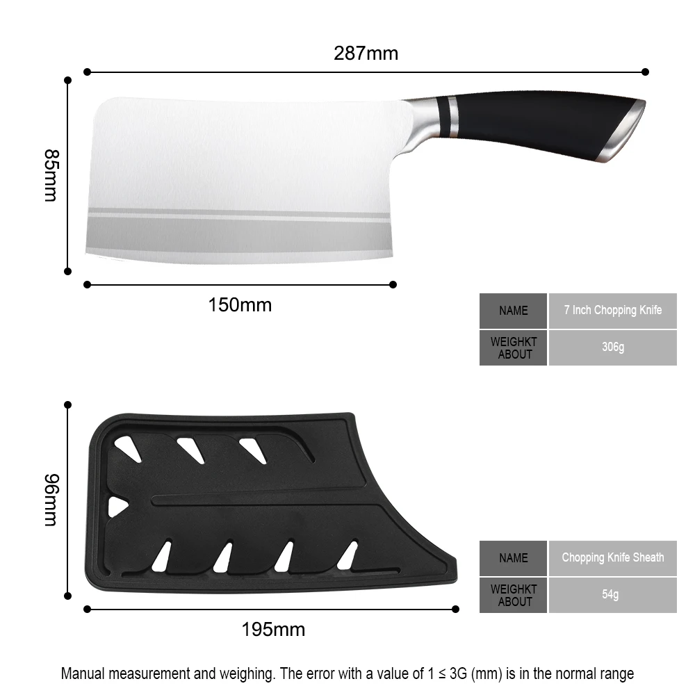 7 ''нож из нержавеющей стали Измельчитель изгиб ручка Полный Тан Кливер мясной нож шеф-повара нож для мяса рыбы кухонный аксессуар бесплатная крышка