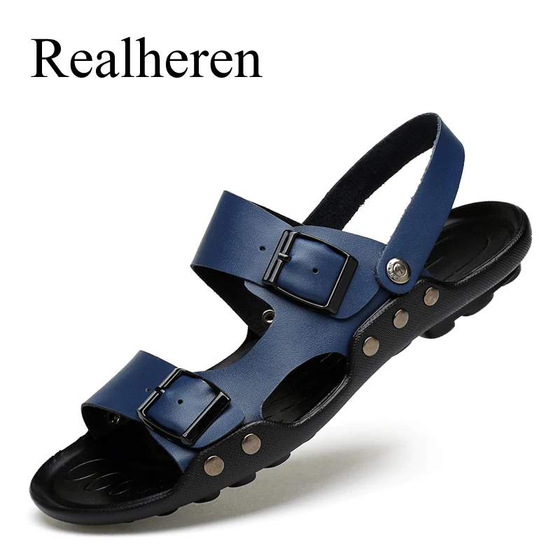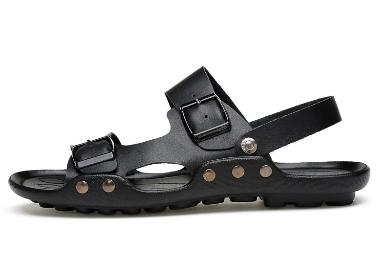 Шлепанцы мужские кожаные, мягкие дышащие сандалии, Повседневная прогулочная обувь, для улицы, черные, лето 2021