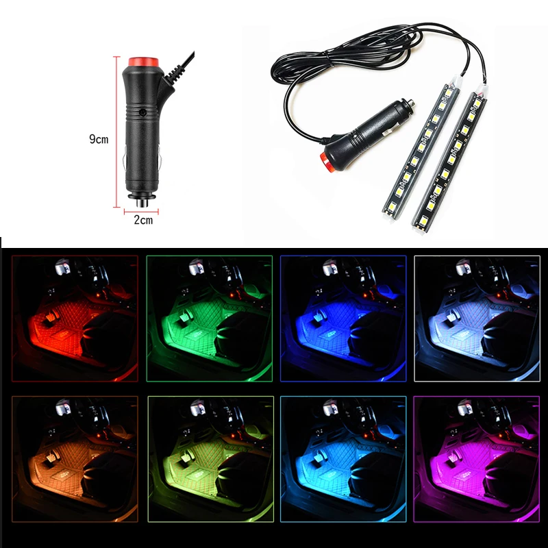Многоцветный автомобиля 9 светодиодный 2 In1 интерьер атмосфера огни приборной панели для пола для ног светодиодные полосы света для Mazda Nissan Infiniti Subaru
