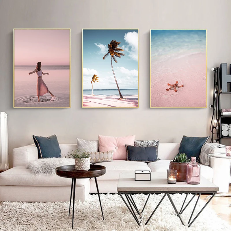 GATYZTORY 60x75 см Рамка Картина по номерам ручная роспись уникальный подарок для взрослых розовый Пляж пейзаж Живопись для дома