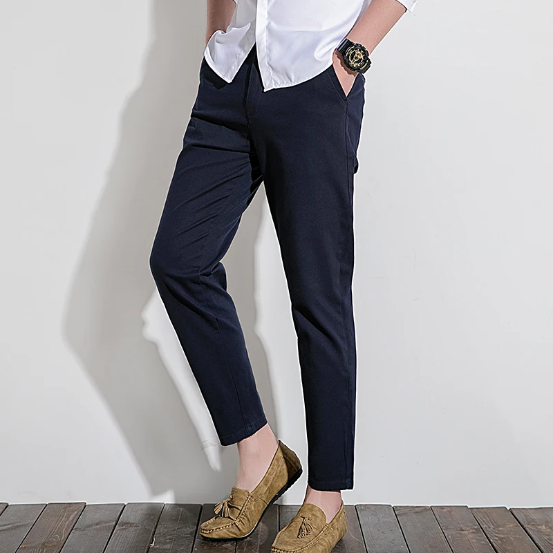 Брюки мужские из 97% хлопка, до щиколотки, прямые, в Корейском стиле, размеры 28-38