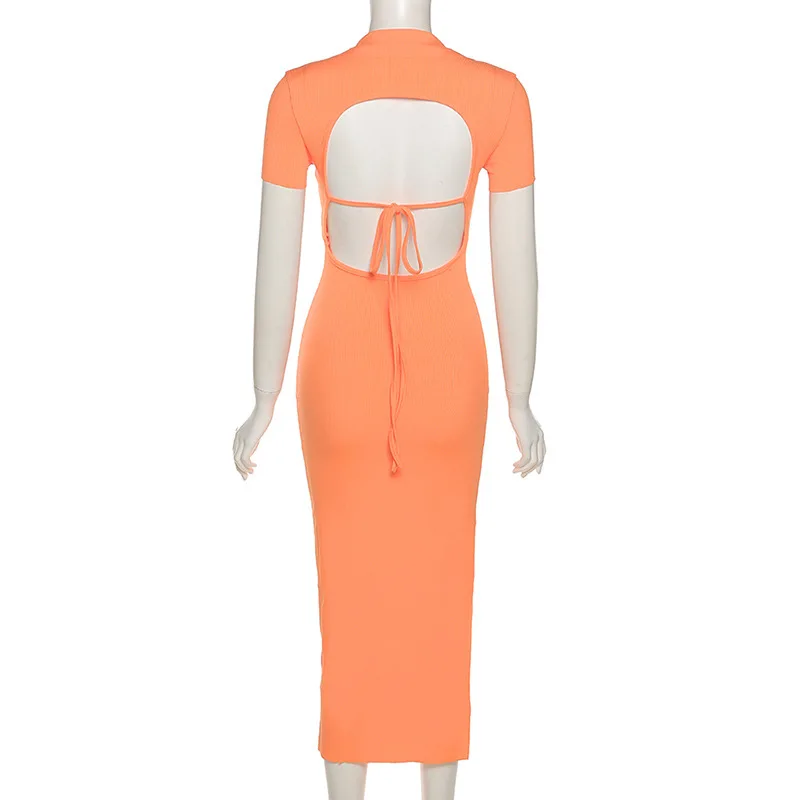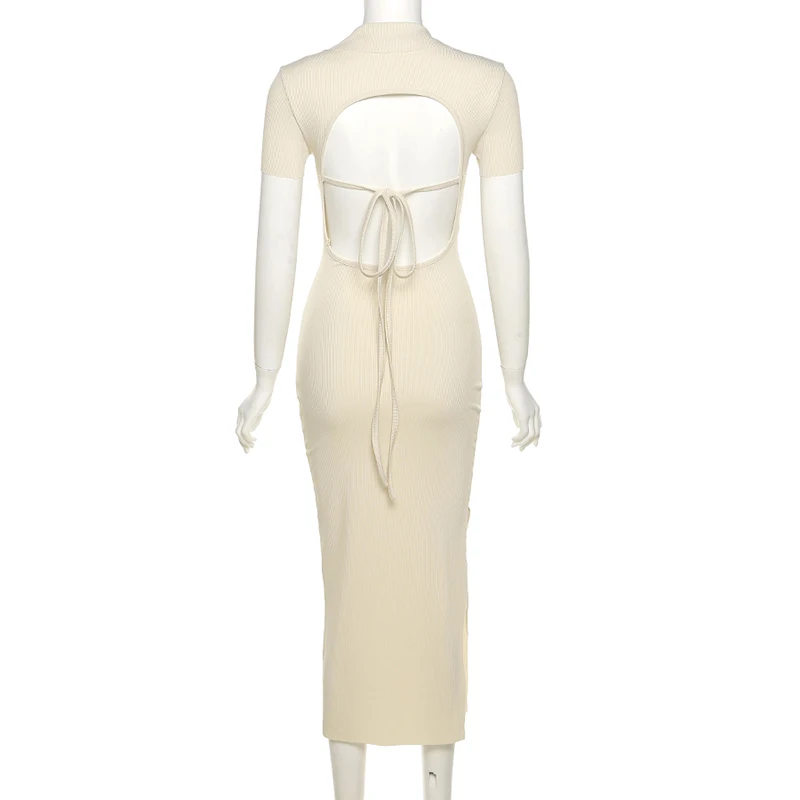 Женское трикотажное платье-миди, черное базовое платье с вырезом, открытой спиной и коротким рукавом, осень облегающее женское платья г., Y2K