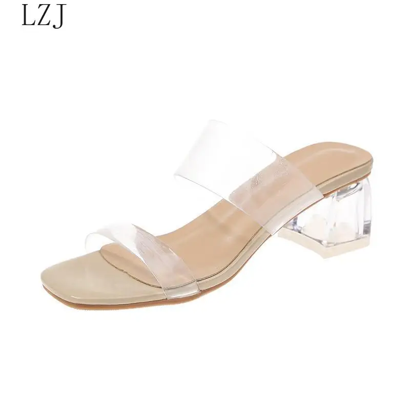 На прозрачном каблуке; Женские сандалии-шлепанцы Женская летняя обу...