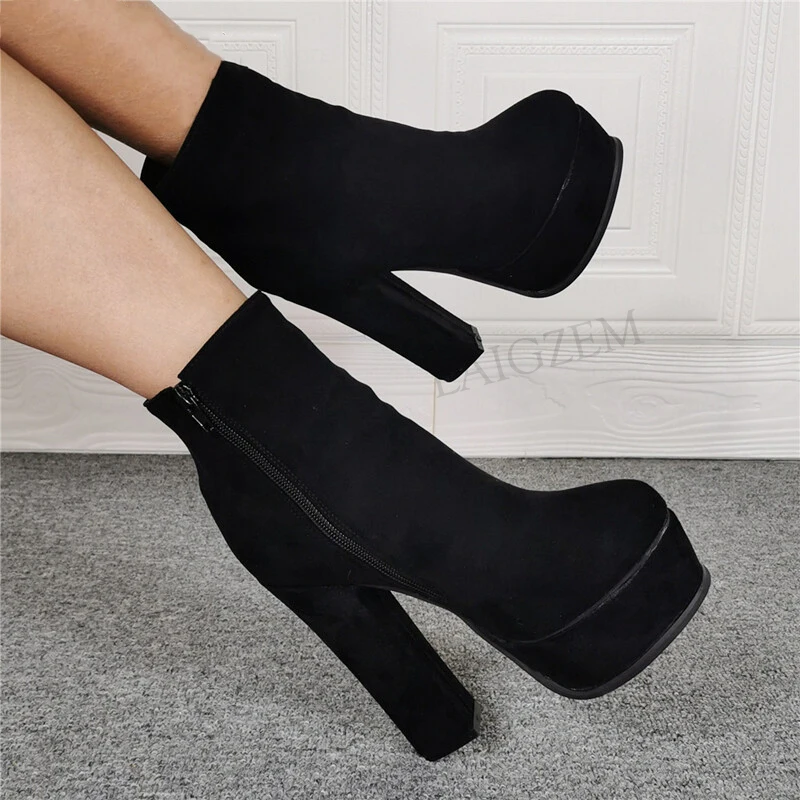 Женские ботильоны на платформе SEIIHEM, короткие ботинки на толстом массивном каблуке, женская обувь из искусственной замши, женские ботинки больших размеров 41 42 47 5 52