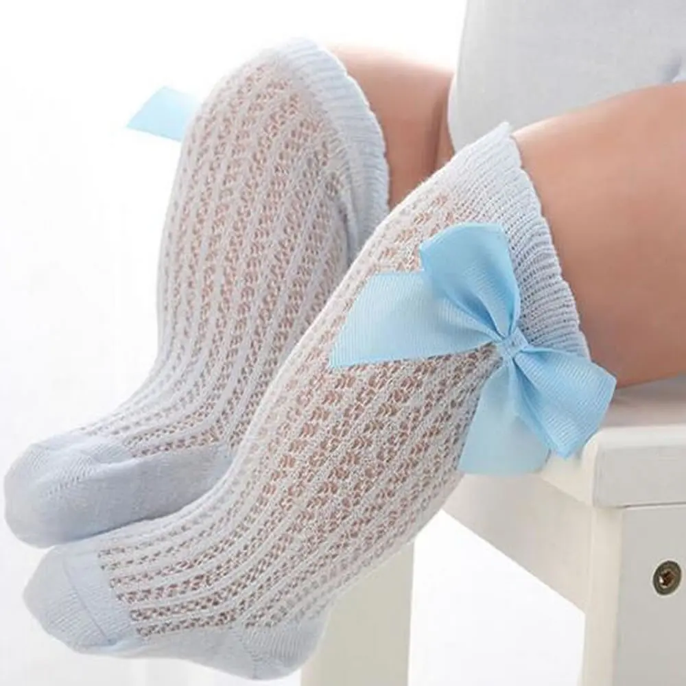 Детские гольфы, детские носки для маленьких девочек, хлопковые сетчатые милые длинные носки принцессы с рюшами и бантом, милые детские аксессуары
