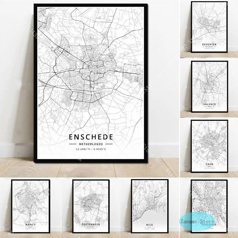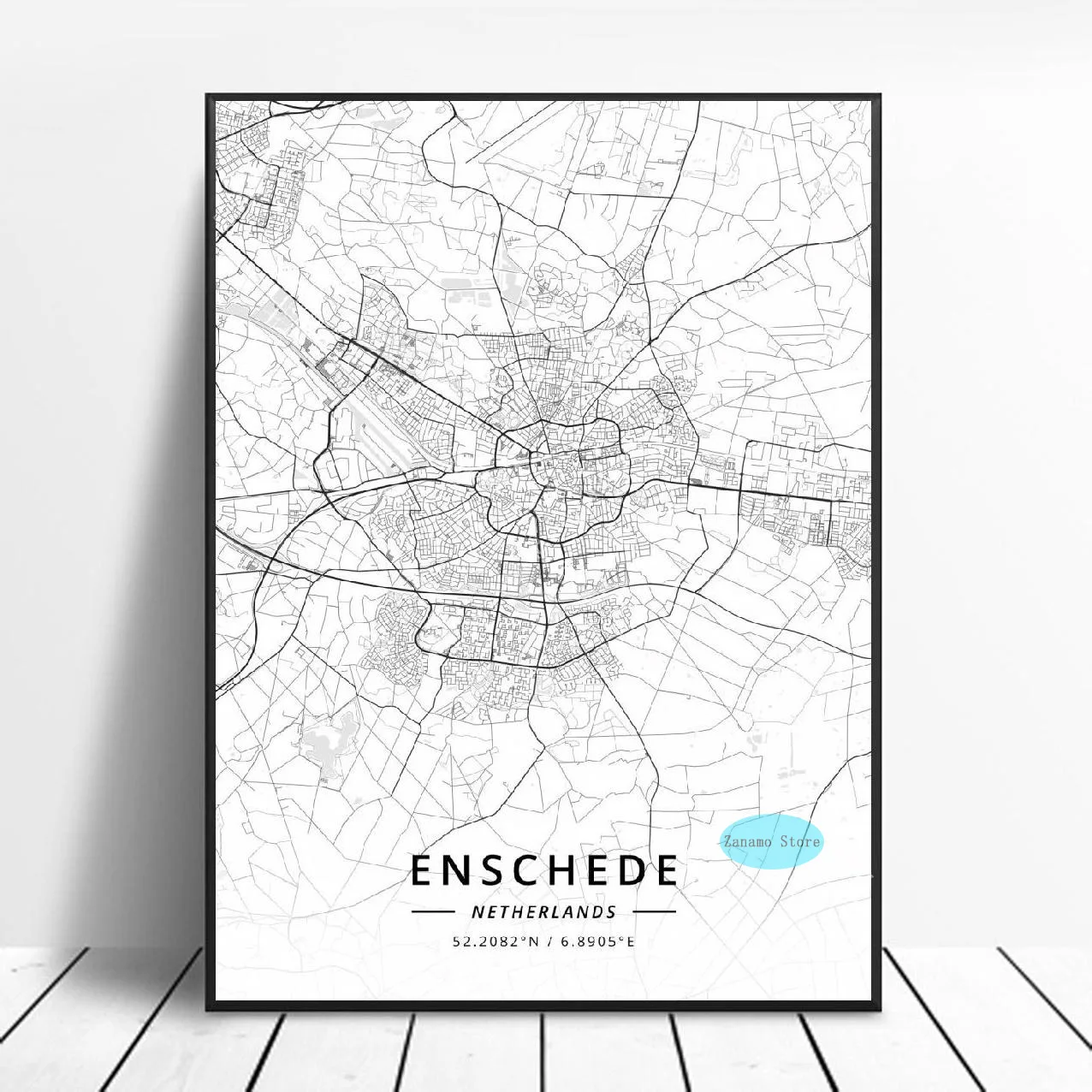 ZT837 Новая дорожная карта мира Enschede Deventer Nordic картина, печатный плакат холст для гостиной Настенная картина винтажный домашний декор