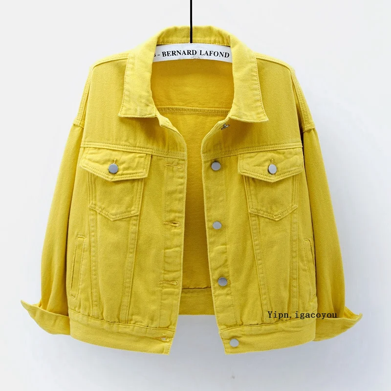 Джинсовая куртка и пальто для женщин, осень 2021, желтая повседневн...