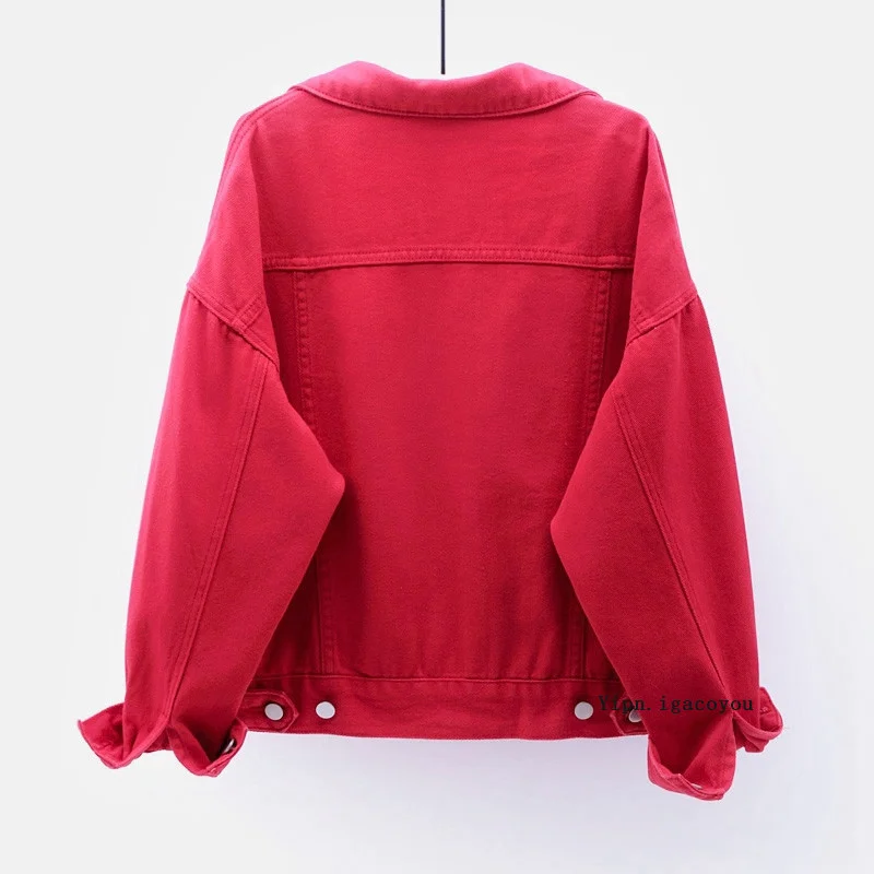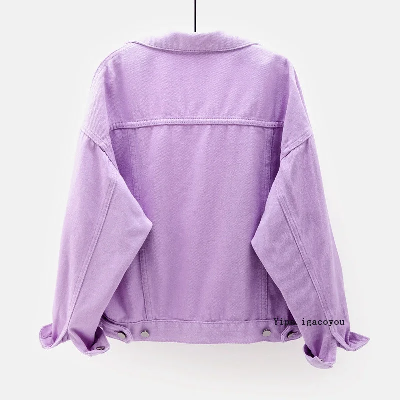 Куртка женская джинсовая короткая свободного покроя, модная верхняя одежда из денима в Корейском стиле, розовая, белая, красная, фиолетовая, черная, желтая, для студентов, на осень