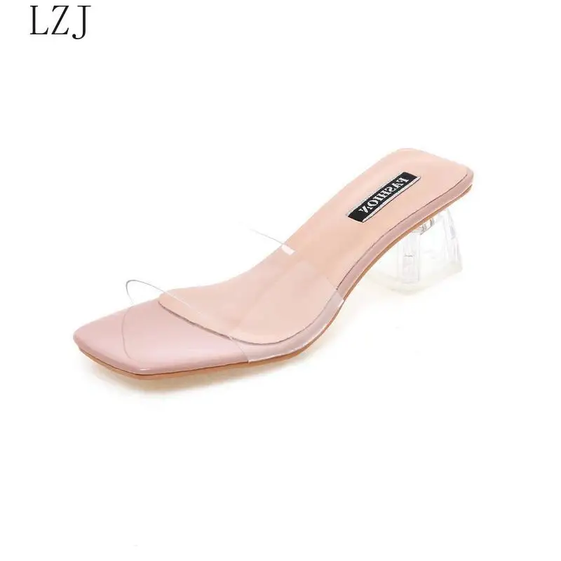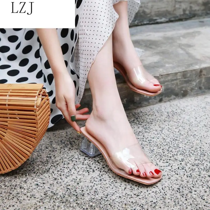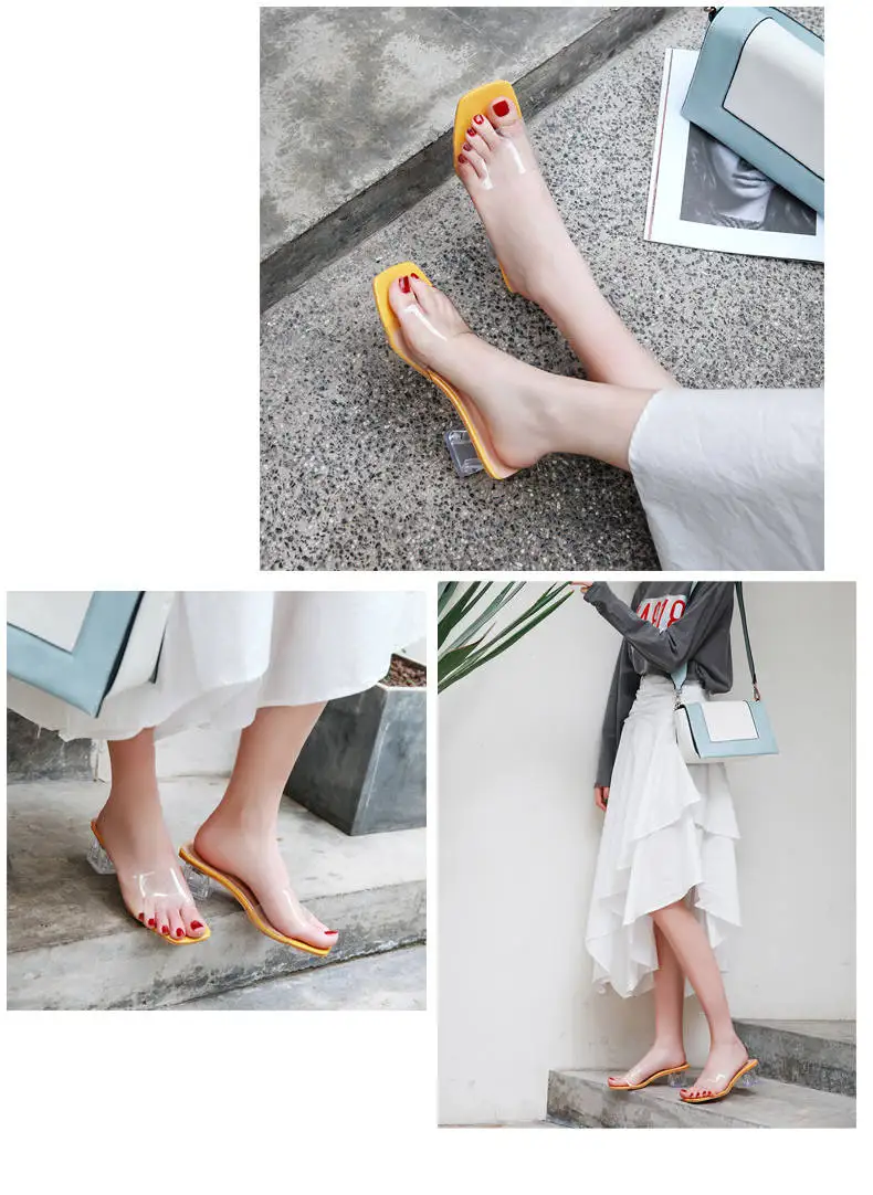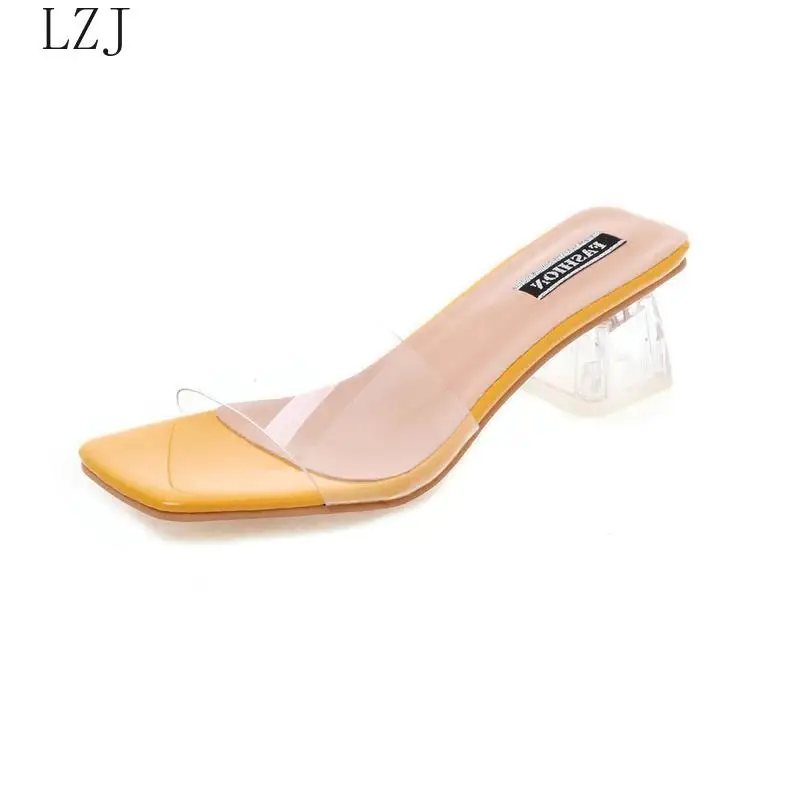 Женские сандалии на высоком каблуке, желтые прозрачные сандалии из ПВХ с пряжкой на ремешках, обувь знаменитостей в простом стиле, лето 2020