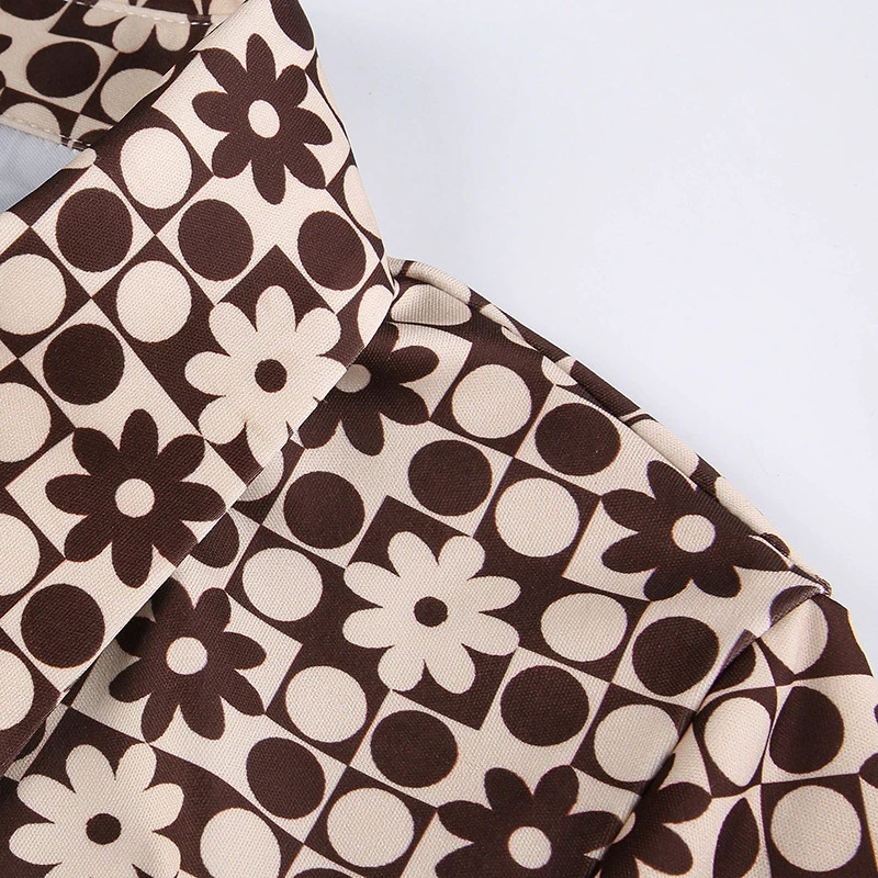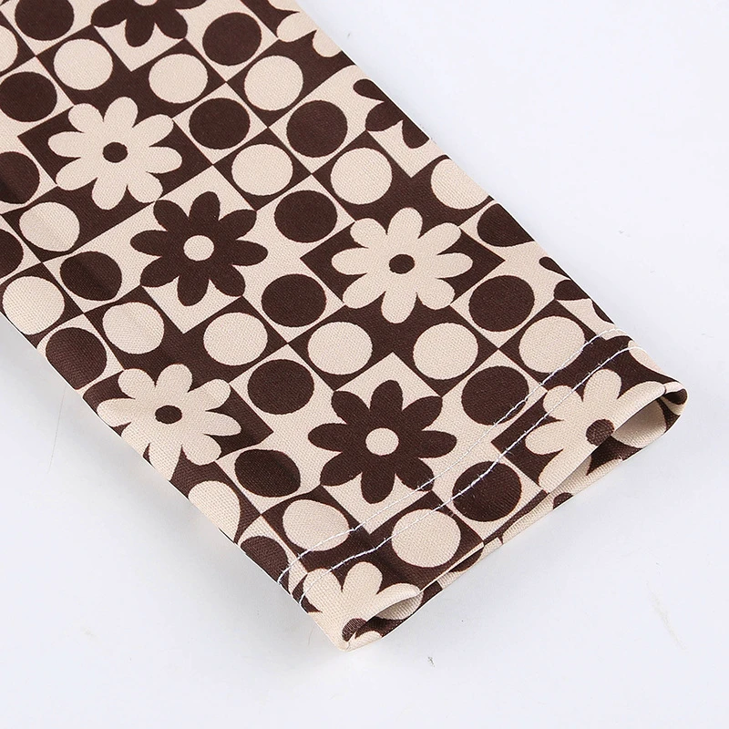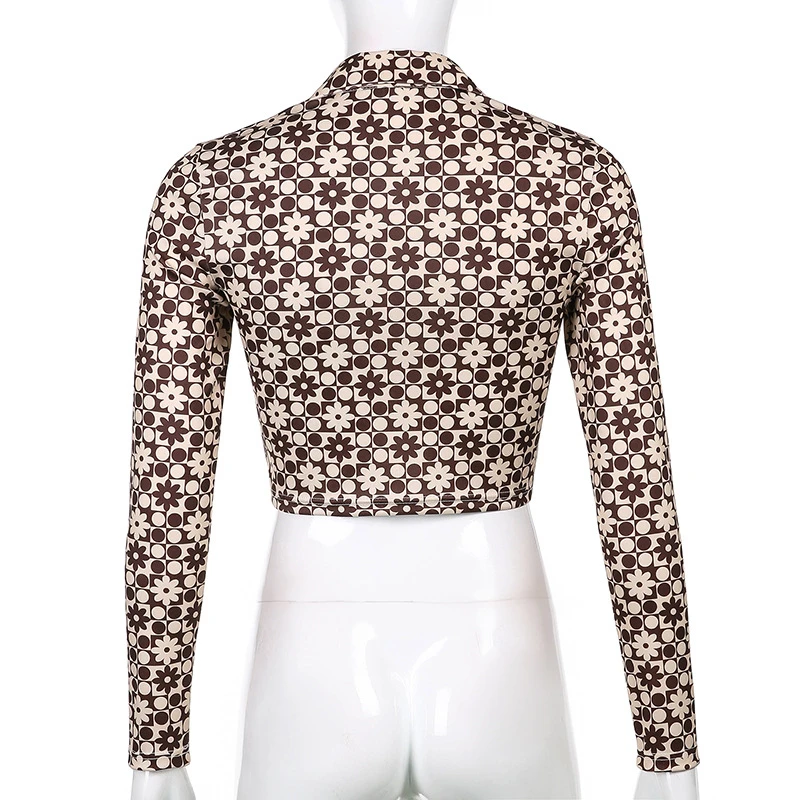 Женский короткий топ с винтажным принтом Y2K, коричневый Повседневный однобортный Топ с длинным рукавом в Корейском стиле