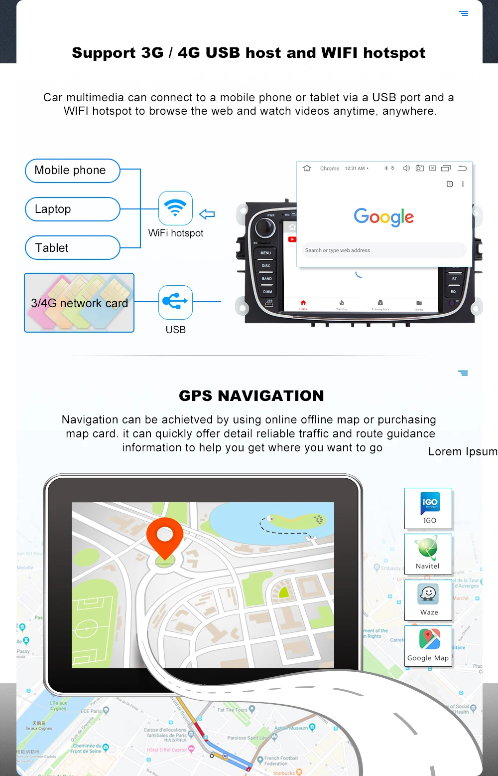 Для Ford Focus II (2008,2009,2010,2011) / Mondeo (2007,2008,2009,2010,2011) / C-Max (2008,2009,2010,2011) / S-Max (2008,2009,2010,2011) (Пожалуйста, проверьте размеры заранее) / Galaxy II (2006,2007,2008,2009,2010,2011) (Пожалуйста, проверьте размеры заранее) / Kuga (2008,2009,2010,2011,2012) (Пожалуйста, проверьте размеры заранее) fordTransit Connect 2010