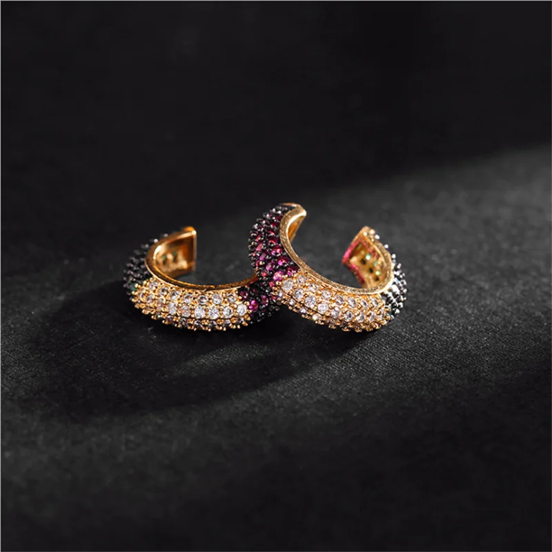 Модные ювелирные изделия, весенне-летние медные циркониевые серьги типа C, фиолетовые, зеленые, круглые клипсы для ушей, для девочек, без пирсинга