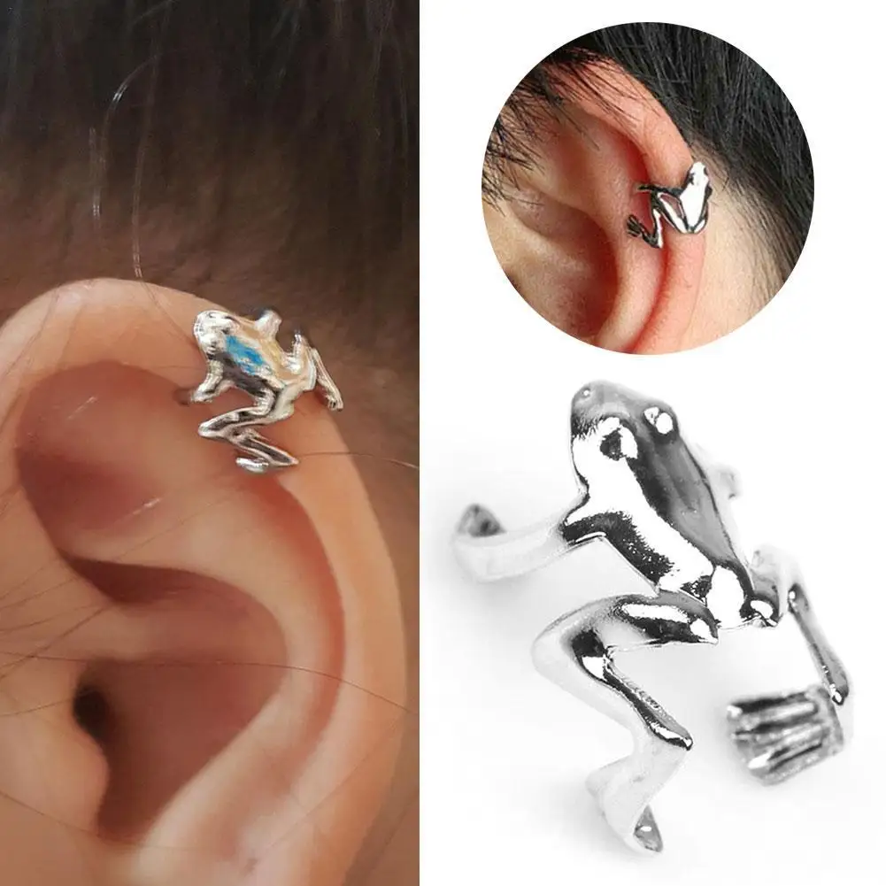3D ползать Ретро лягушка Манжеты Ухо клип без Имитация пирсинга серьги, Надеваемые На ушной хрящ лягушка кафф на ухо клип верхняя спиральный для хряща серьги, Надеваемые На ушной хрящ