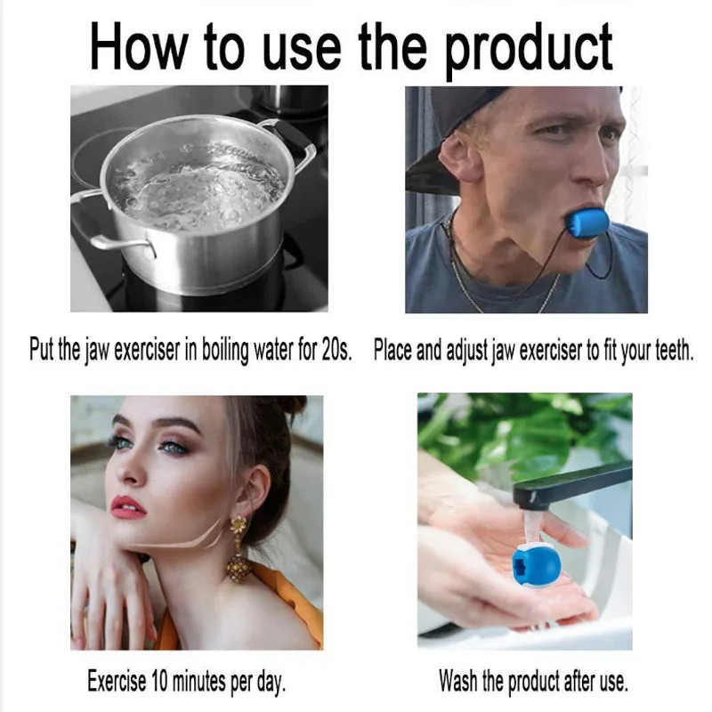 1. Высокое качество: тренажер для мышц лица изготовлен из пищевого силикона, который отличается прочностью и не вредит организму.2. Легко чистить: жеваемый гаджет легко поддерживать, из антипригарного материала, что упрощает мытье.3. Легкий и компактный, легко носить с собой в сумке во время поездки. Тренажер для жевательных мышц предназначен для тренировки мышц лица, для украшения линии лица.