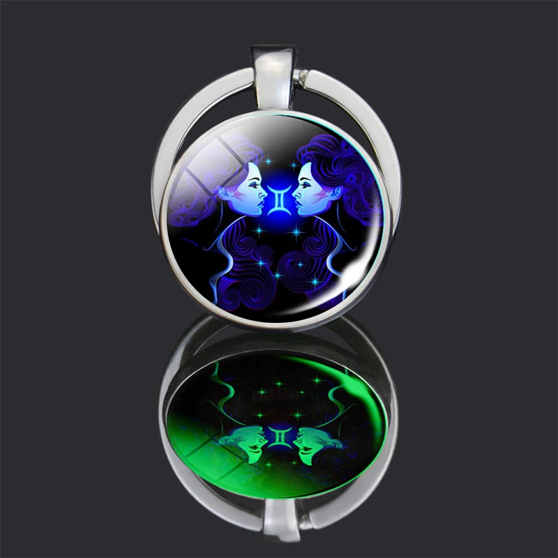 12 Созвездие светящийся двойной лицо брелок Знаки зодиака Лев бижутерия со стеклянными кабошонами брелки светящийся брелок подарок на день рождения