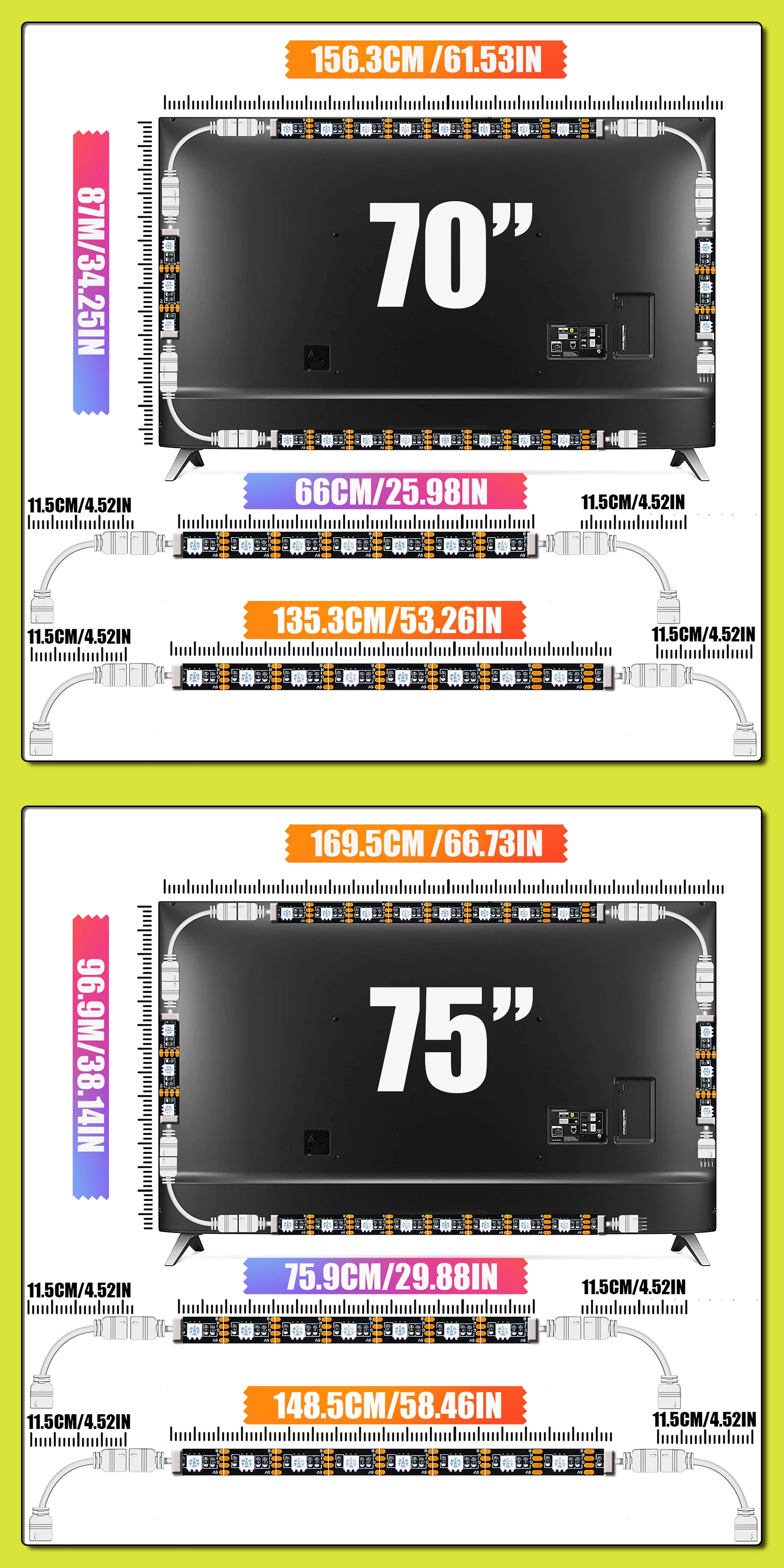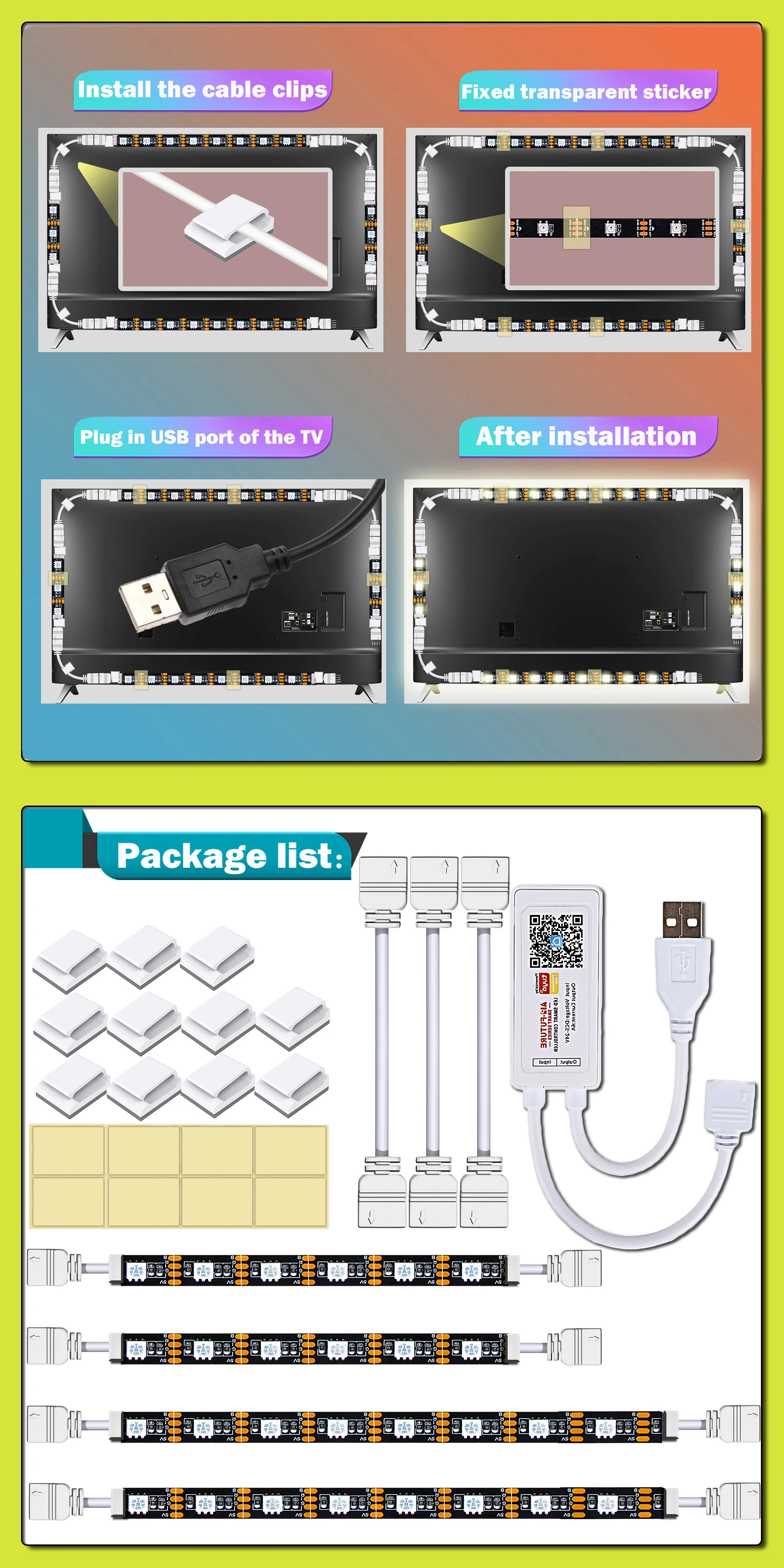 Светодиодная лента 43in 49in 55in 58in 60in 65in 70in 75in для фона телевизора WIFI светильник вая лента с соединительным кабелем USB гибкая лента