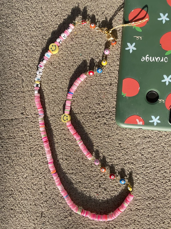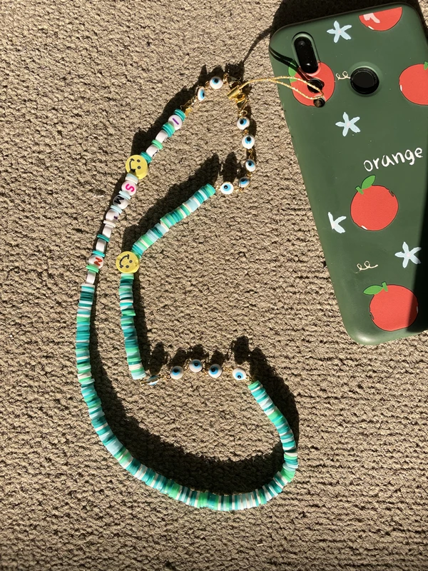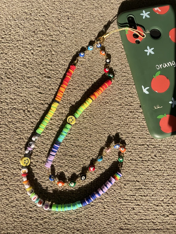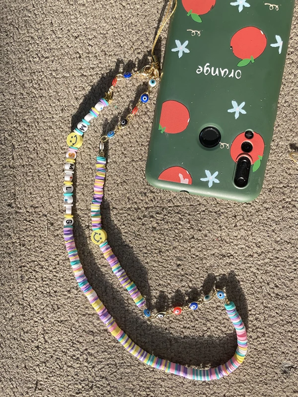 HangZhi 2021 Новинка Радужный Цвет Мягкая Керамика смайлик сглаза ручная работа цепочка из бисера для Мобильный телефон ремешок для сотового телефона ремешок